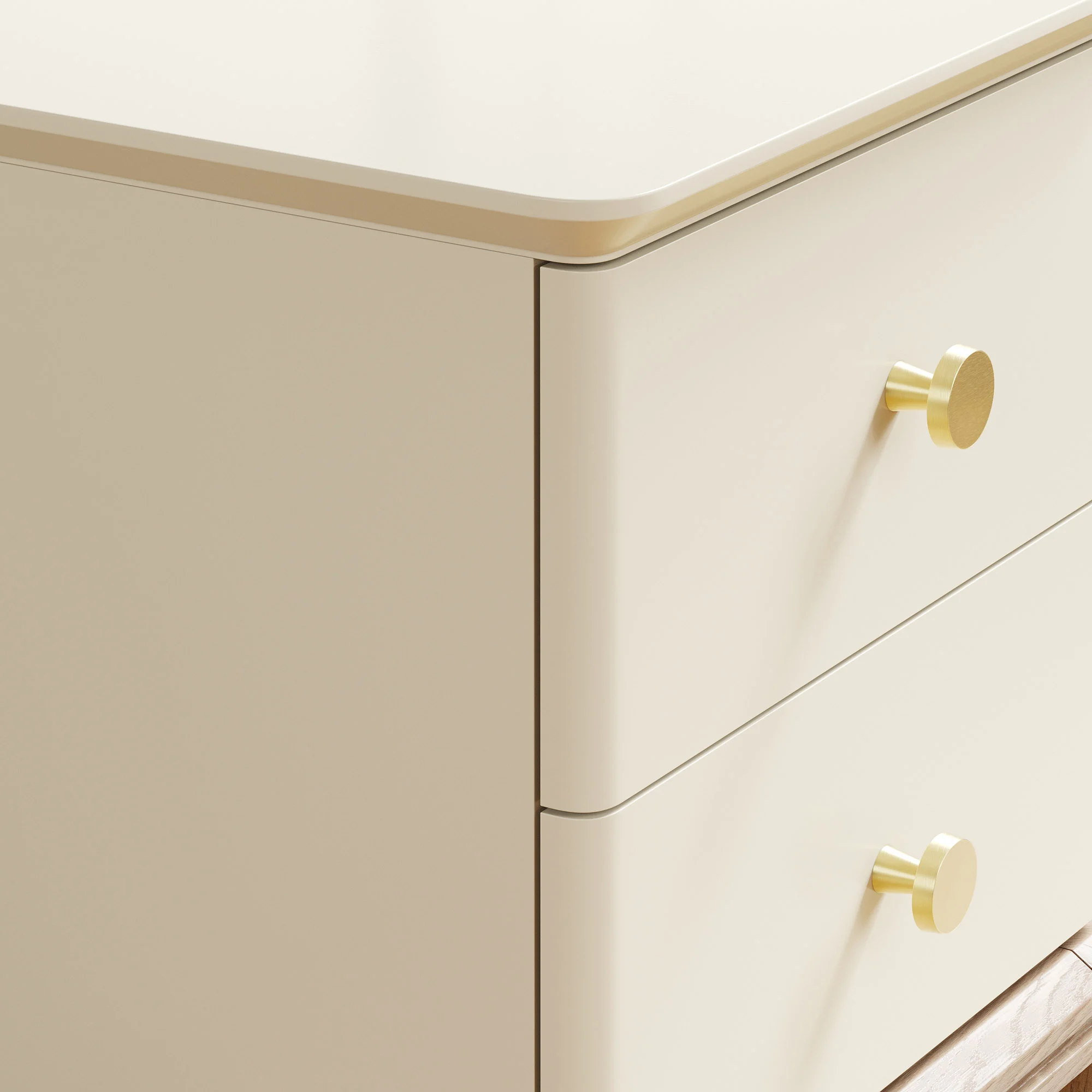 — Столешница со скругленными краями выполнена в шпоне дуба и окрашена эмалью поверх текстуры дерева;