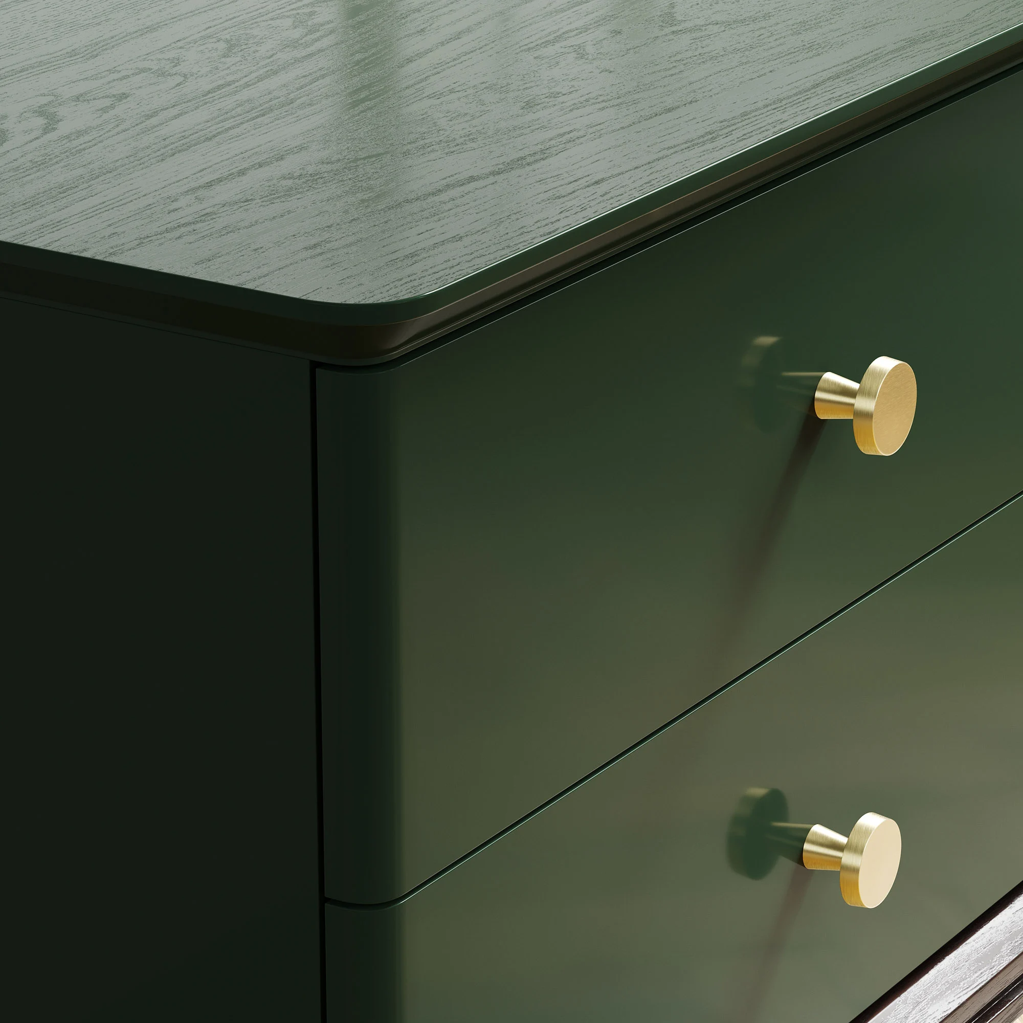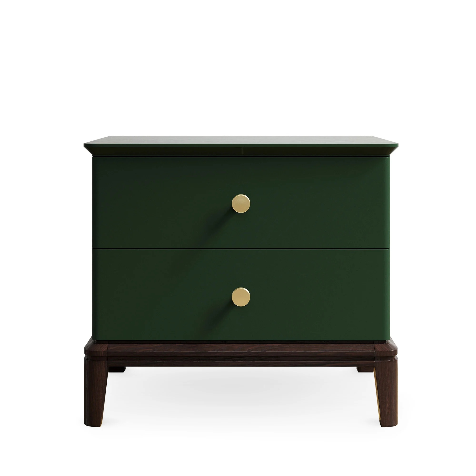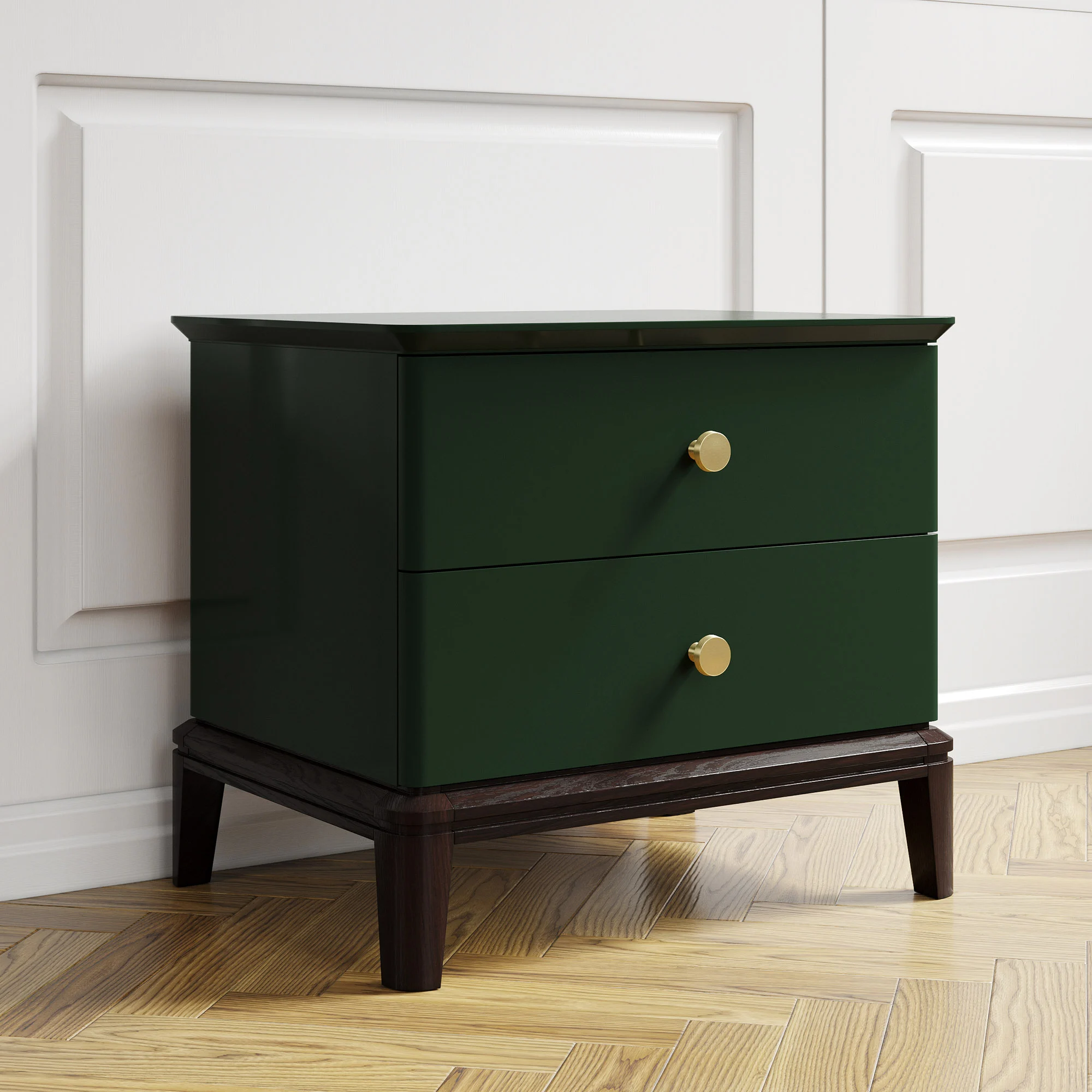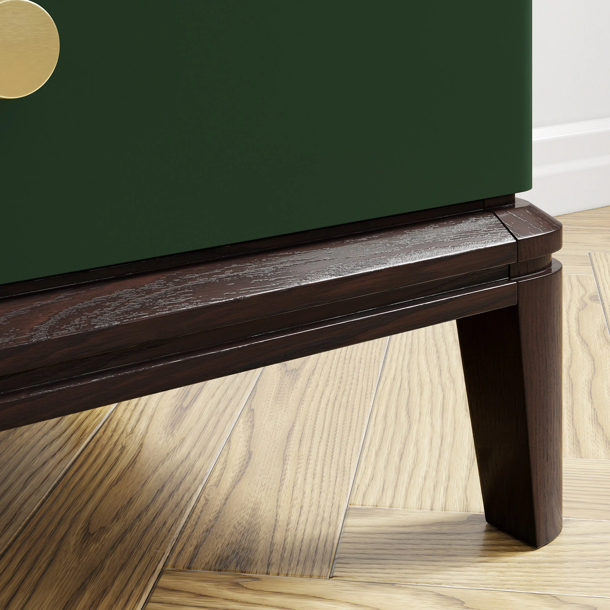 Тумба оснащена двумя ящиками для хранения, которые украшают массивные ручки в стильной отделке. Ножки из массива дуба обрабатываются вручную: их многогранные очертания результат кропотливой работы наших специалистов.