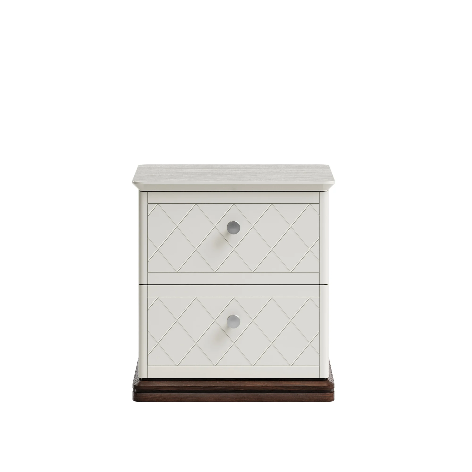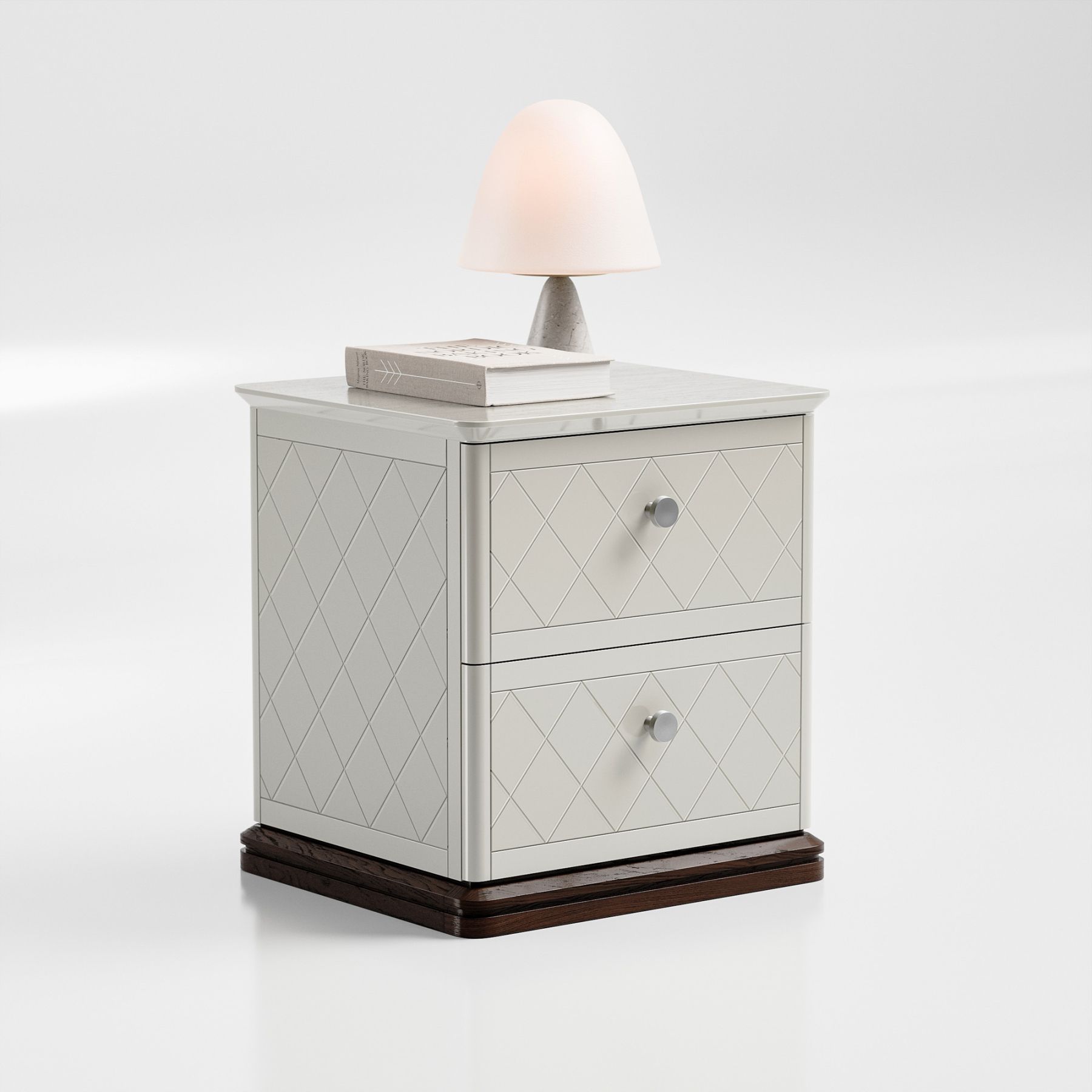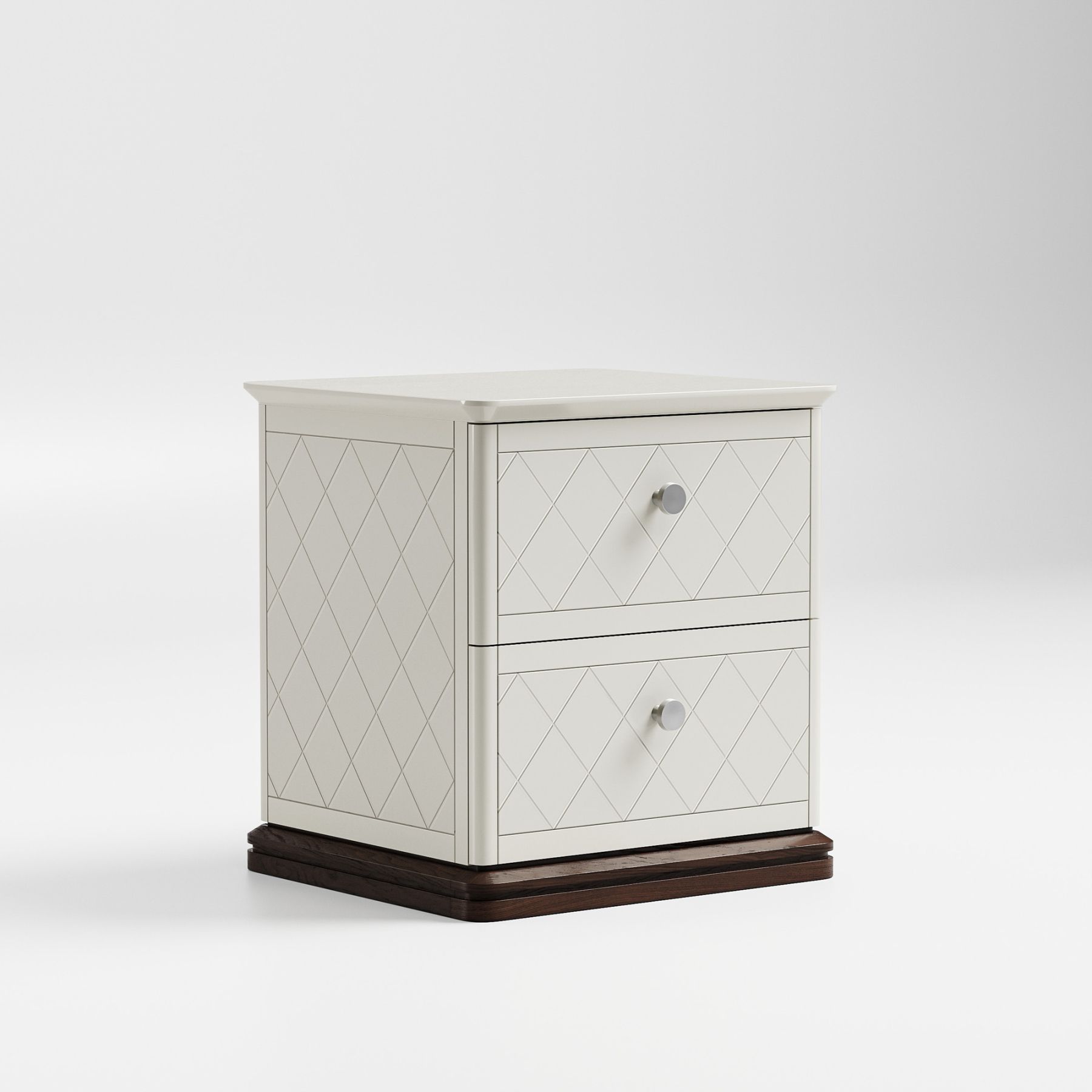 Будущее украшение вашей спальни — прикроватная тумба, которая привлекает внимание, несмотря на свои компактные габариты. Узнаваемые элементы современной классики — золотые детали, изящная ступенчатая фрезеровка цоколя и столешницы, придающая тумбе узнаваемый силуэт стиля. Еще одна особенность — трехсторонняя гравировка, переходящая с фасада на боковые стенки, завершает композицию.