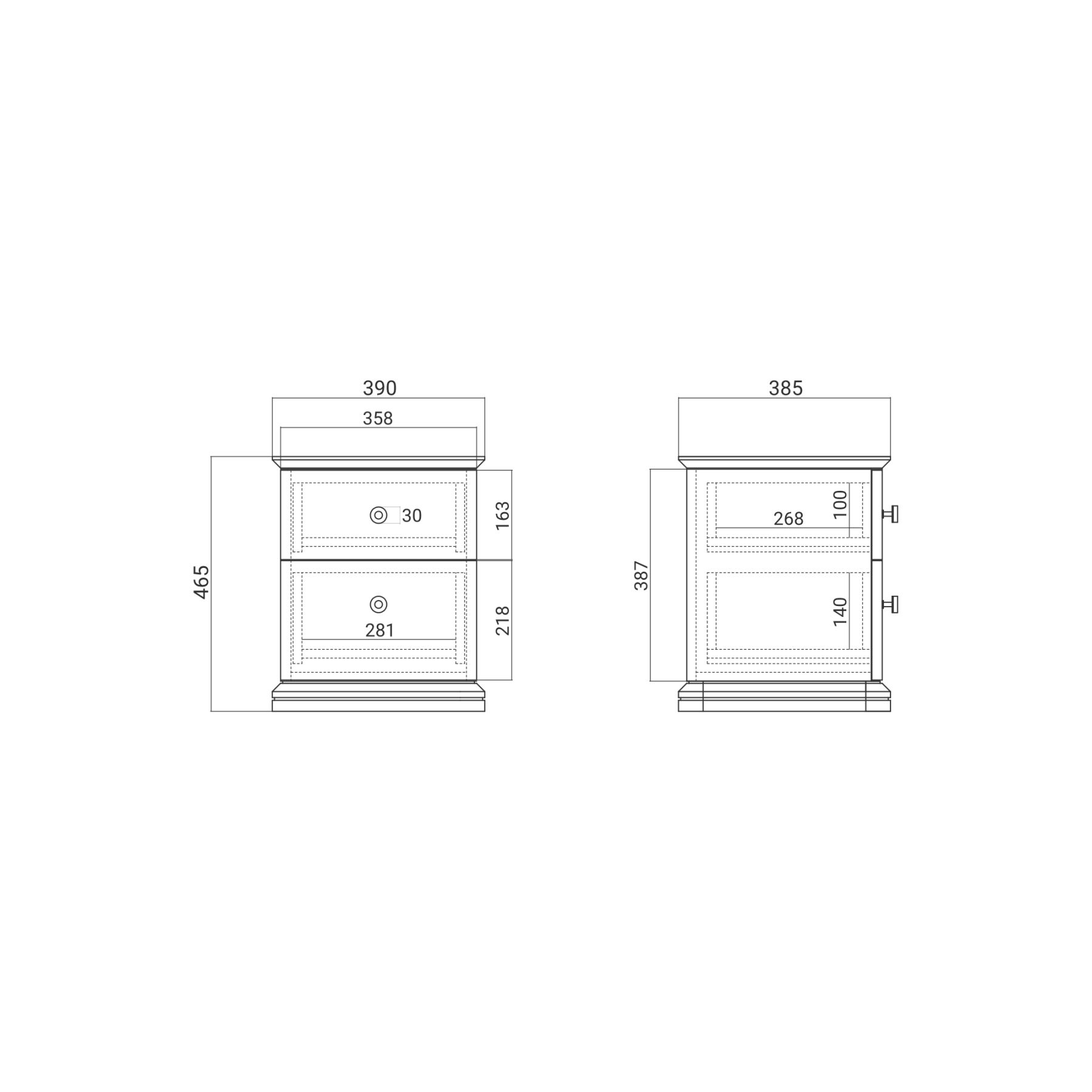 Тумба оснащена двумя ящиками для хранения, которые украшают массивные ручки в стильной отделке. Ножки из массива дуба обрабатываются вручную: их многогранные очертания — результат кропотливой работы наших специалистов.