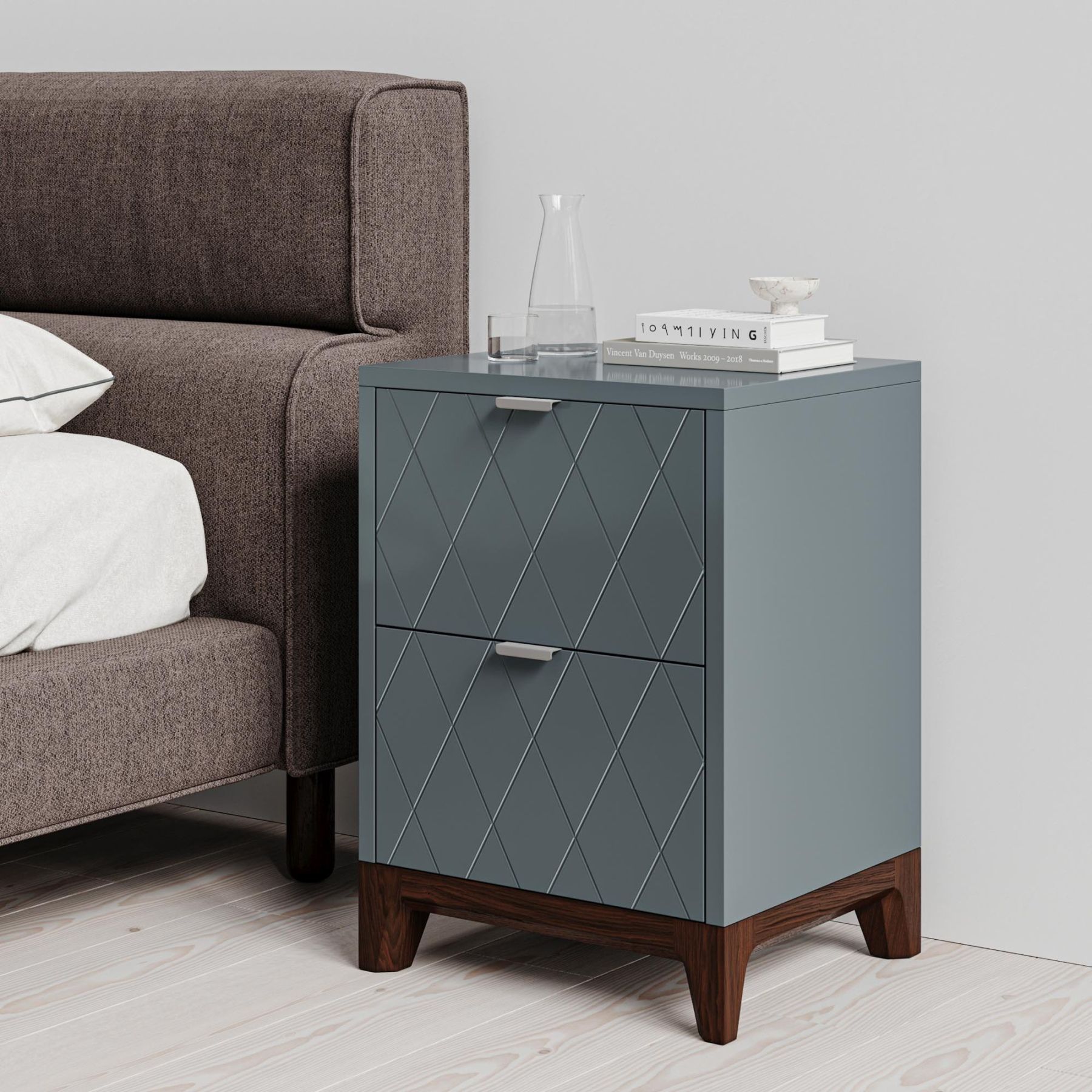 Основание и ножки выполнены из массива дуба, цвет которого вы можете выбрать из 7 вариантов. Корпус тумбы может быть покрыт эмалью или натуральным шпоном дуба. Фасады могут быть покрыты эмалью с / без гравировки или натуральным шпоном дуба.
