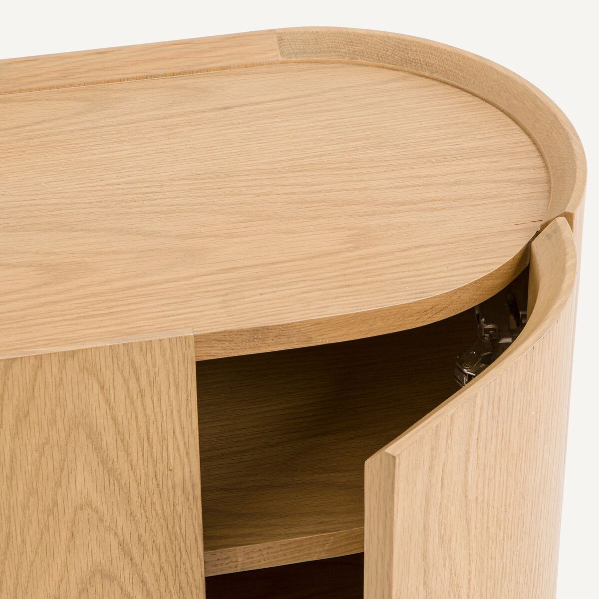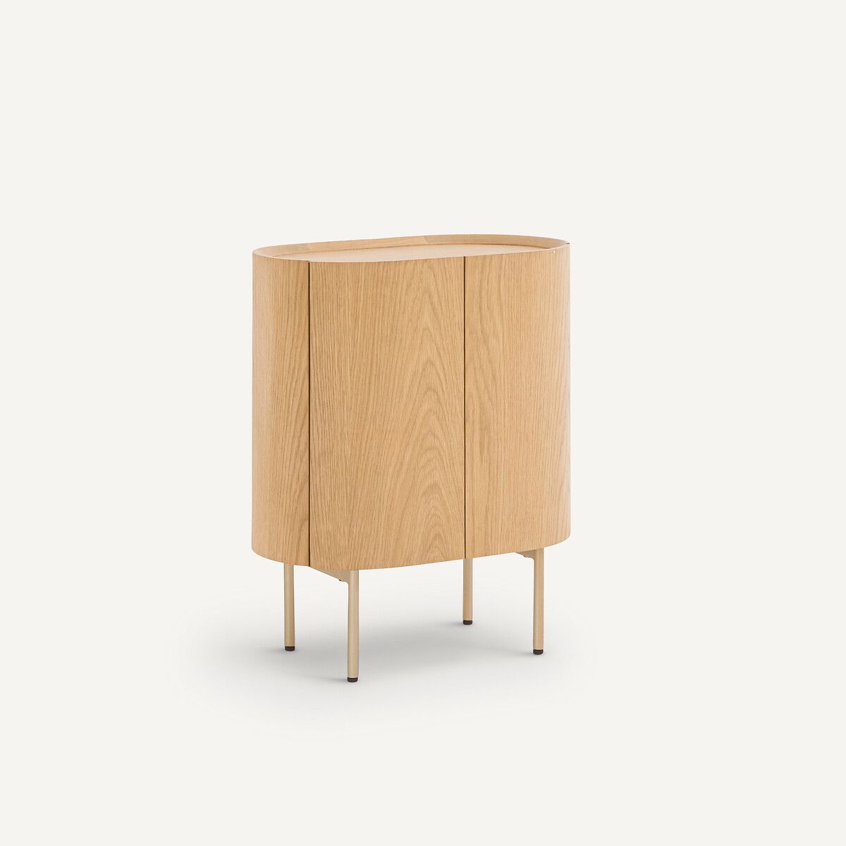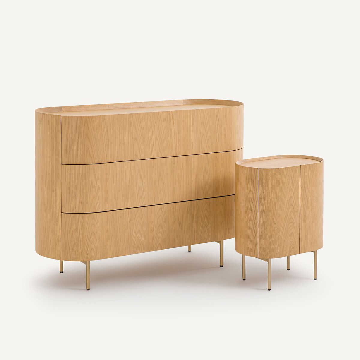Прикроватная тумба Aslen выполнена в стиле ар-деко. Кривые линии смягчают силуэт, а тонкие ножки добавляют воздушность.
