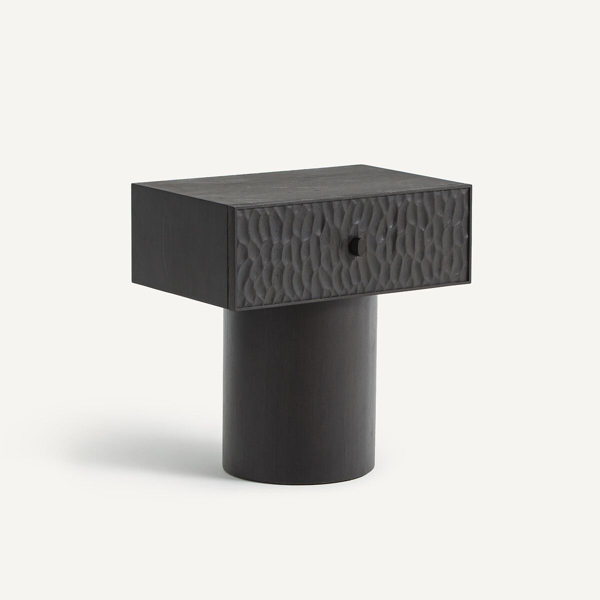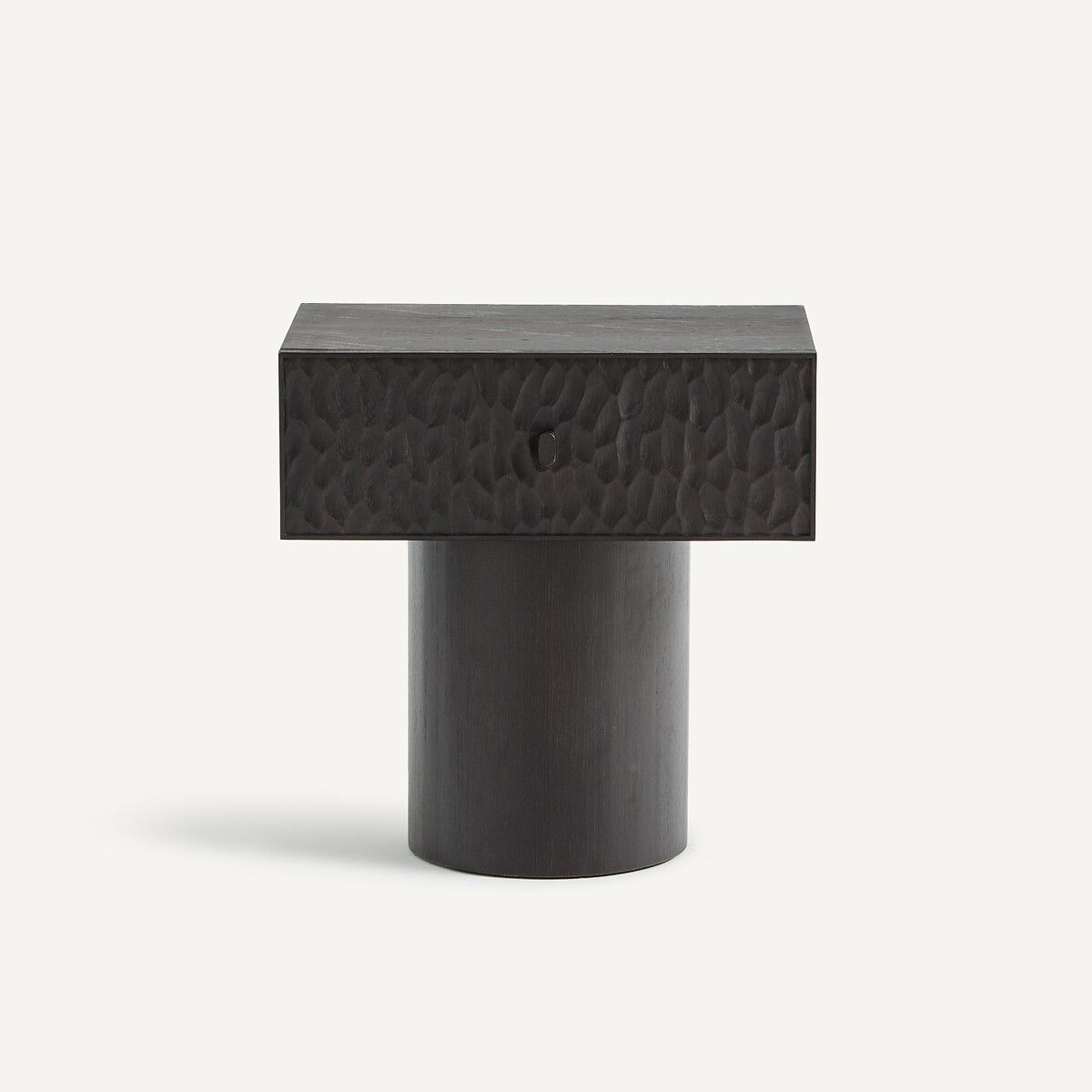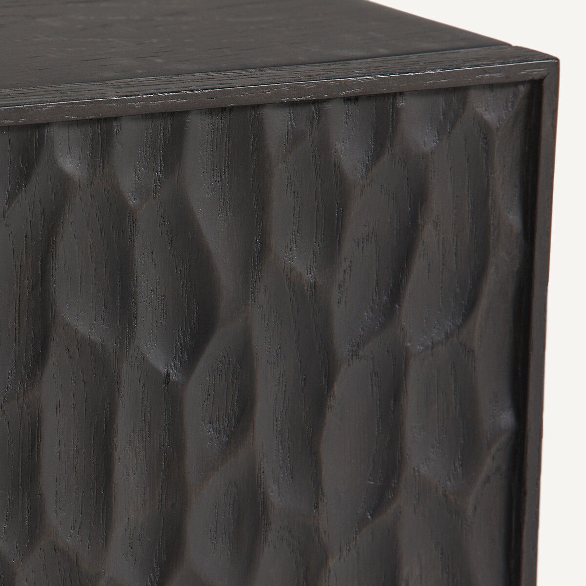— Ящик из массива дуба и МДФ, шпонированного дубом и окрашенного в цвет жженого кофе.