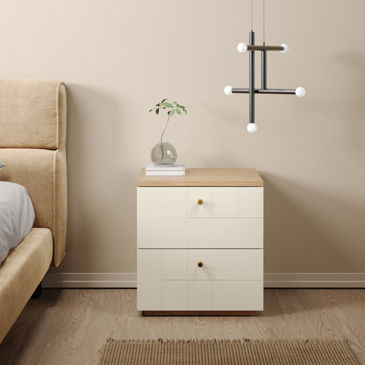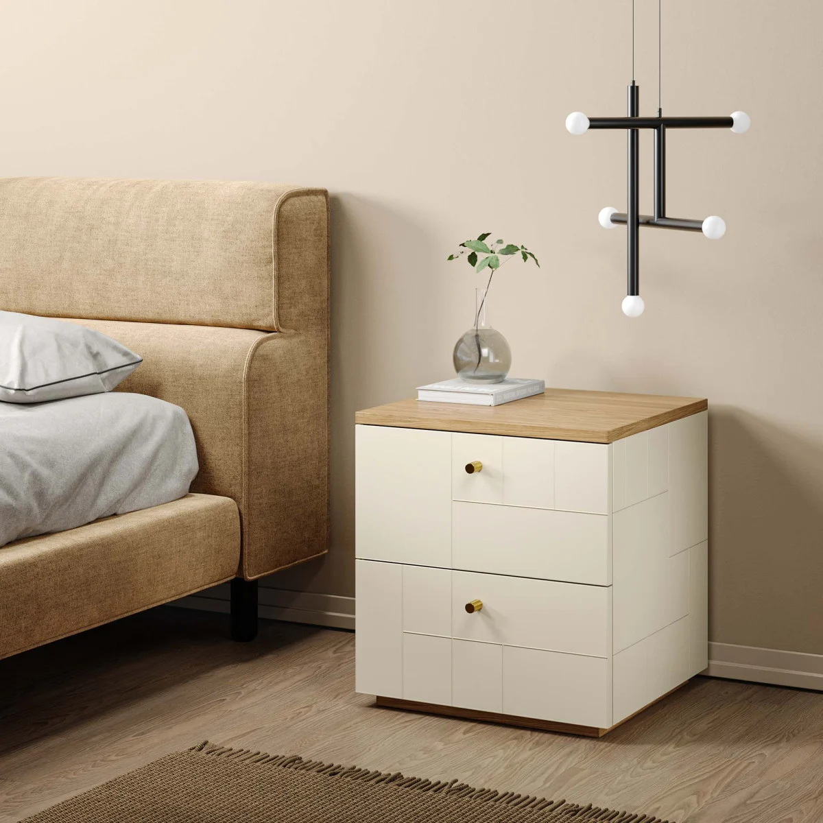 Прикроватная тумба на цоколе ML018 смотрится органично и невероятно стильно в любом интерьере. Тумба изготовлена из МДФ и натурального шпона дуба, и покрыта матовой эмалью. В ящиках тумбы с легкостью поместятся все необходимые мелочи, а ее фасады и боковые стенки украшены минималистичным узором гравировки. Модель станет настоящим украшением вашей спальни.