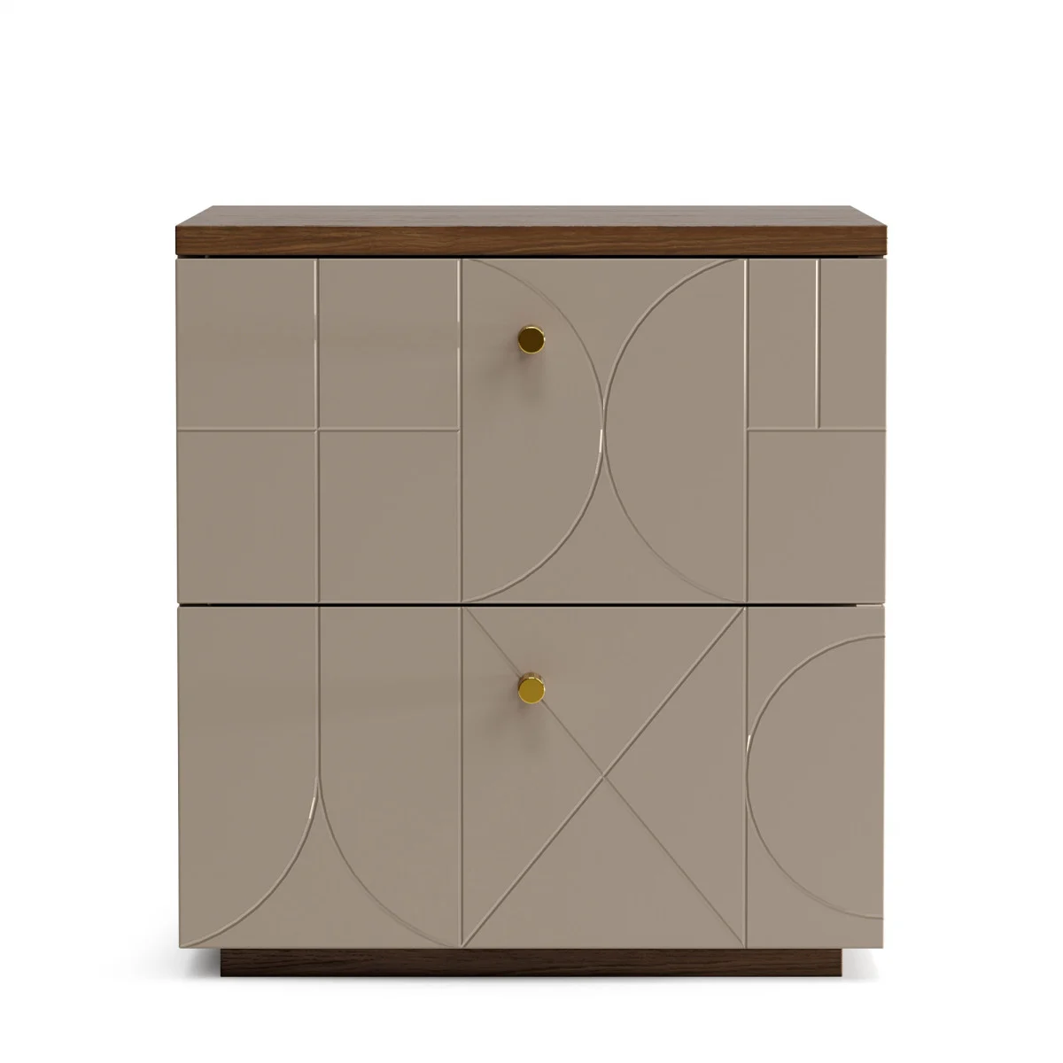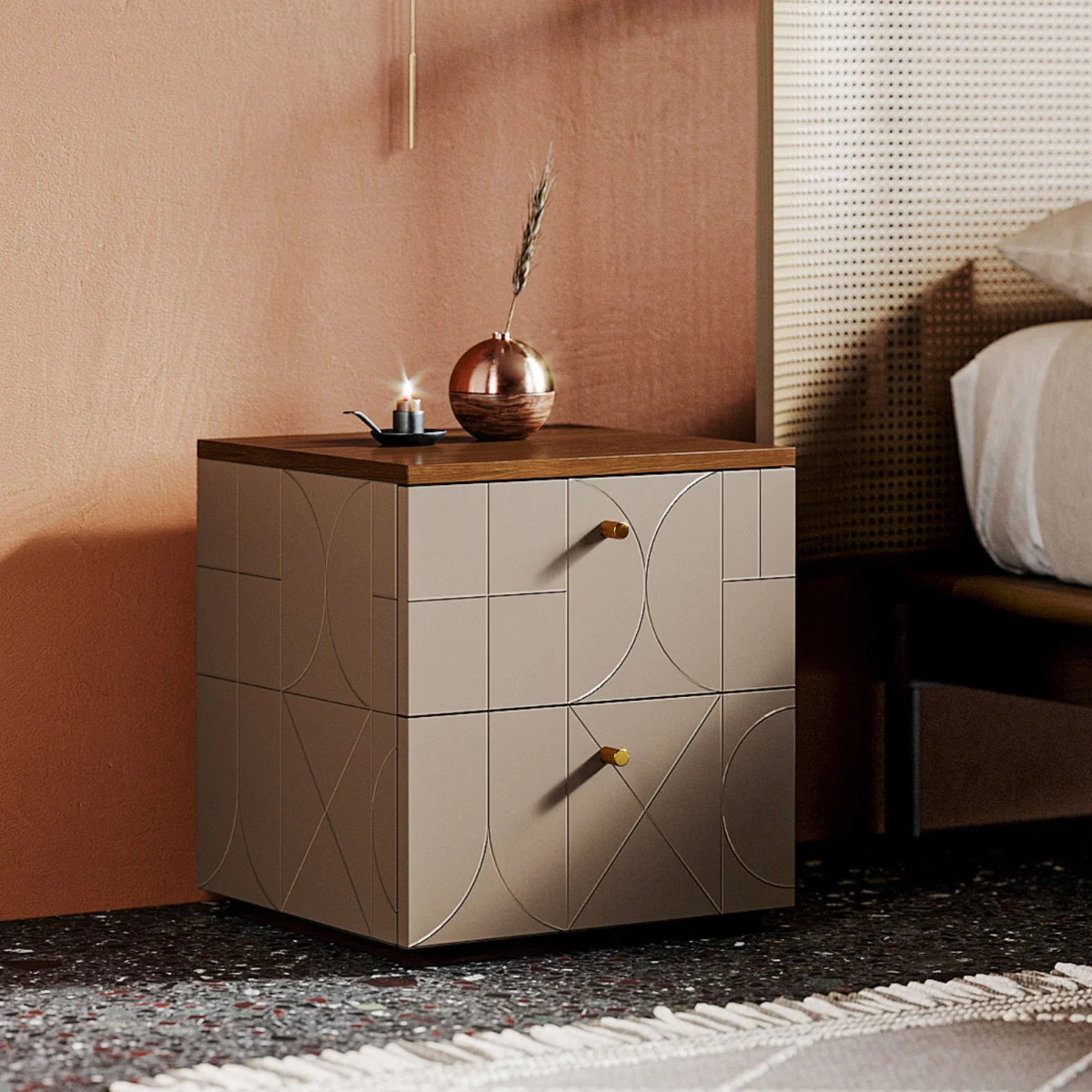 Прикроватная тумба на цоколе ML018 смотрится органично и невероятно стильно в любом интерьере. Тумба изготовлена из МДФ и натурального шпона дуба, и покрыта матовой эмалью. В ящиках тумбы с легкостью поместятся все необходимые мелочи, а ее фасады и боковые стенки украшены минималистичным узором гравировки. Модель станет настоящим украшением вашей спальни.