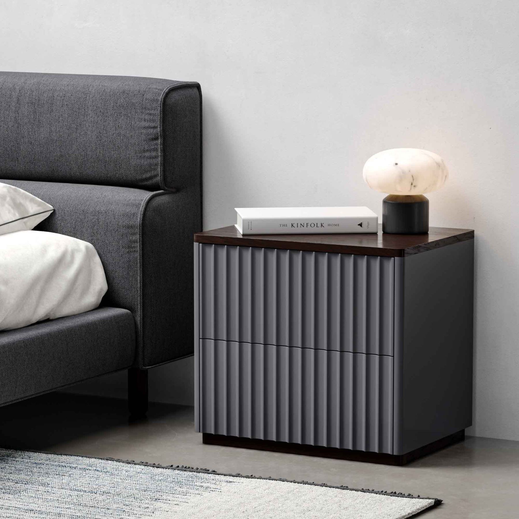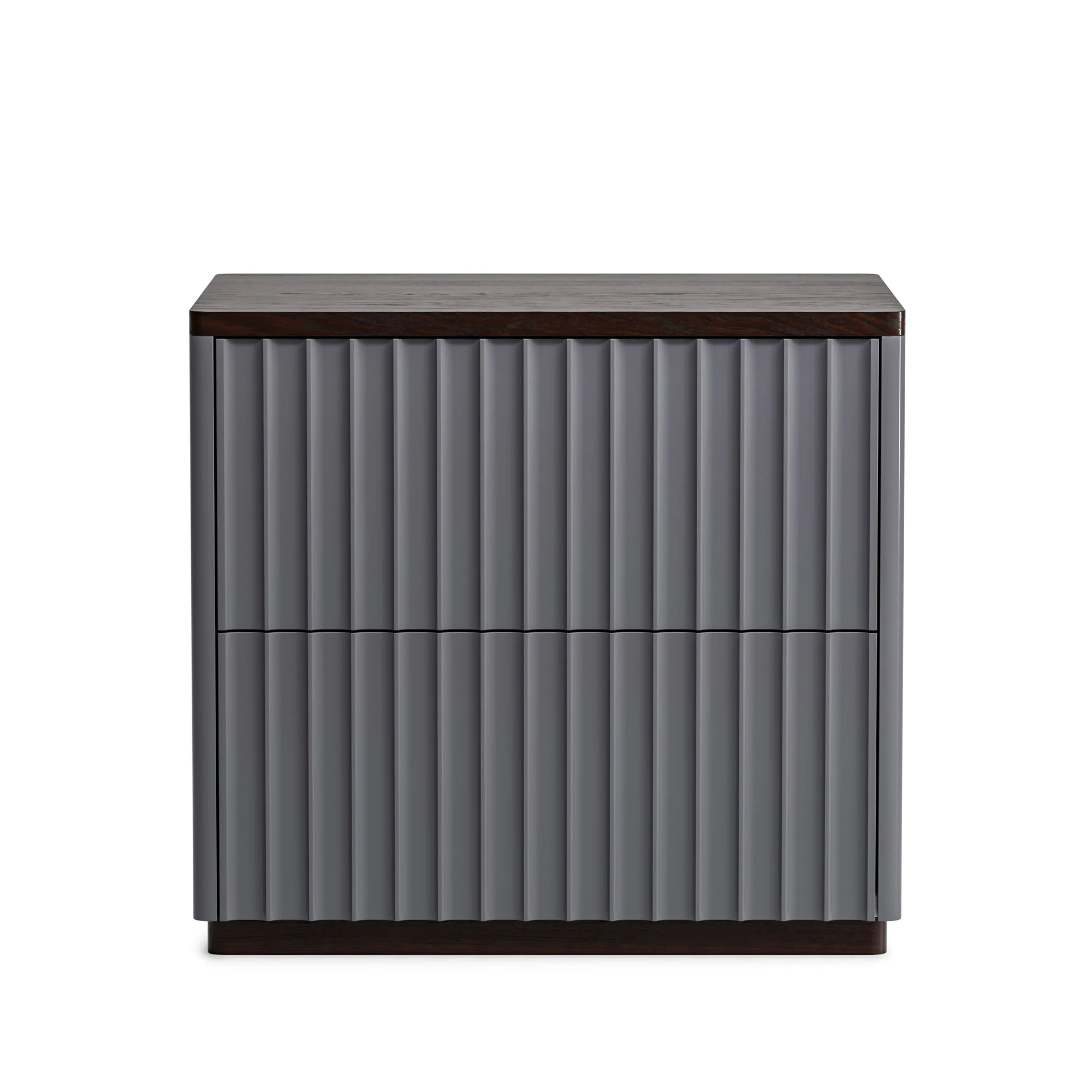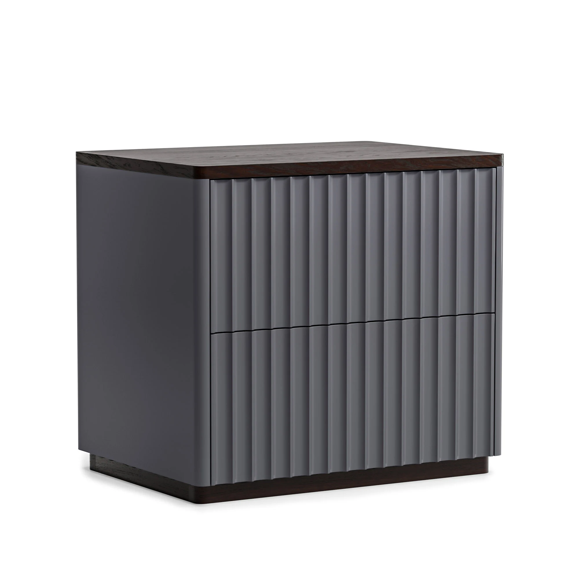 Прикроватная тумба станет украшением даже самого привередливого интерьера спальни, благодаря универсальному дизайну и возможности подобрать цвет и отделку. Плавно скругленные детали каркаса и строгие вертикальные линии на фасадах — отличительные черты дизайна этой тумбы. Аккуратные примыкания деталей стирают границу между ящиками, линии выглядят непрерывными, нет зазоров. Два вместительных ящика открываются от нажатия на корпус. Ход бесшумный и плавный благодаря европейской фурнитуре.