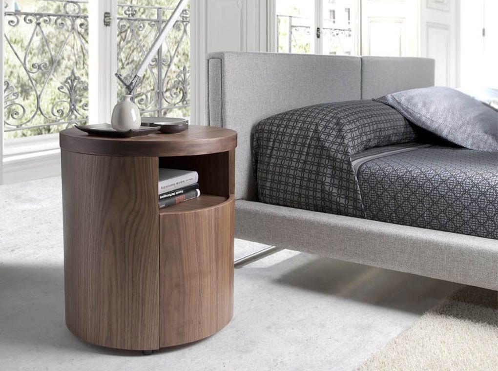 Тумбочка LE313-NOGAL от Angel Cerda — впечатляющий дизайн и стильный шпон ореха. Эта прикроватная тумбочка однозначно выделяется своим оригинальным и изумительным дизайном. Ее внешний вид удивительным образом напоминает часть отесанного бревна, в котором проделано углубление для полки. Однако, при более пристальном рассмотрении, замечаешь, что у изделия также предусмотрена и дверца, за которой спрятан ящик для хранения личных вещей. Данная прикроватная тумбочка имеет цилиндрическую форму. Вверху предусмотрена открытая полка, а ниже — ящик, дверца которого едва заметна. Она не имеет ручек, а открывается путем нажатия. Ящик оснащен доводчиком и прочными металлическим направляющими, обеспечивающими долгую эксплуатацию. Материал изготовления — шпонированный МДФ цвета натурального орехового дерева с природным орнаментом. Тумбочка выше стандартных аналогов. Ее высота — 50 см. Поэтому, при желании, ее можно использовать не только в качестве прикроватной тумбочки, но и как столик. Тем более, что высота «столешницы» легко выдержит высокую весовую нагрузку, так как составляет несколько сантиметров. Да и диаметром тумбочка также впечатляет — 48 см. Благодаря этому, данная модель вполне универсальна. Ее можно расставлять в любой комнате и использовать по-разному. Столик приходит в собранном виде. Его вес составляет 20 кг.