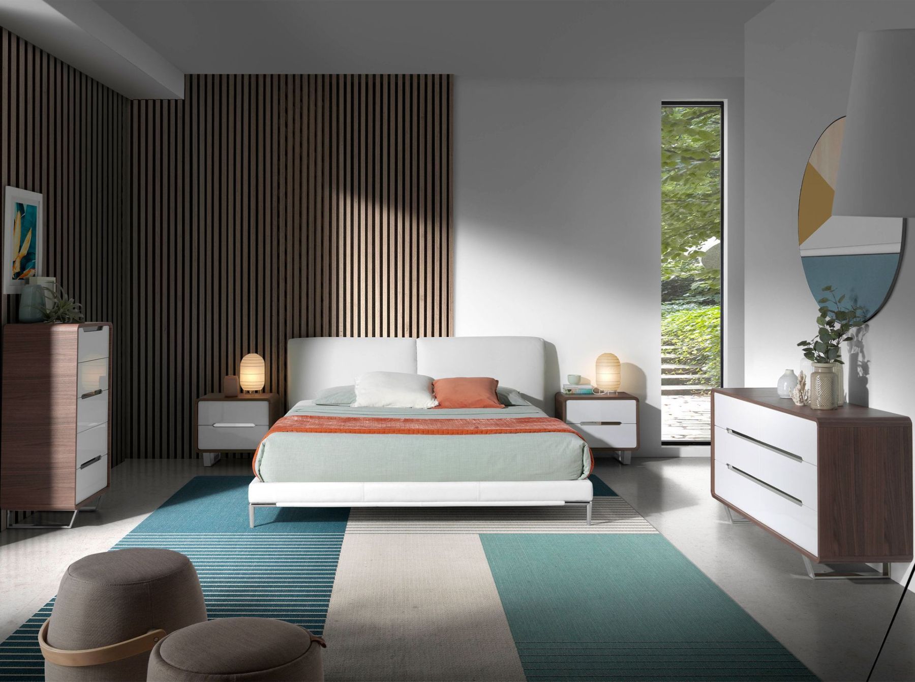 Прикроватный столик оригинального современного дизайна из натурального орехового шпона толщиной 0,5 мм. Его хромированные детали и ножки из нержавеющей стали толщиной 22 микрона придают нотку элегантности и авангарда, которую вы ищете для своей спальни. Держите все на своих местах благодаря большому отсеку для хранения с двумя передними ящиками из МДФ, покрытыми лаком RAL9003 Glossy White с системой плавного закрывания.