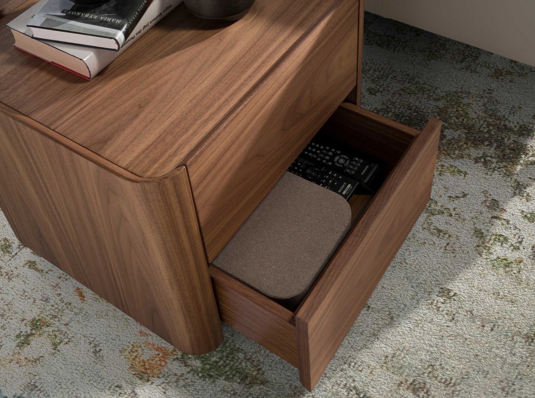 Современный дизайн прикроватной тумбочки с натуральной деревянной структурой, шпонированной орехом, и оригинальной деревянной основой, шпонированной орехом. Освещение этой прикроватной тумбочки позволит вам создать теплую и непринужденную атмосферу, при этом предлагая большую практичность и функциональность. Она имеет достаточно места для хранения с 2 ящиками с ручным открыванием с помощью выемки для пальцев и системой мягкого закрывания.