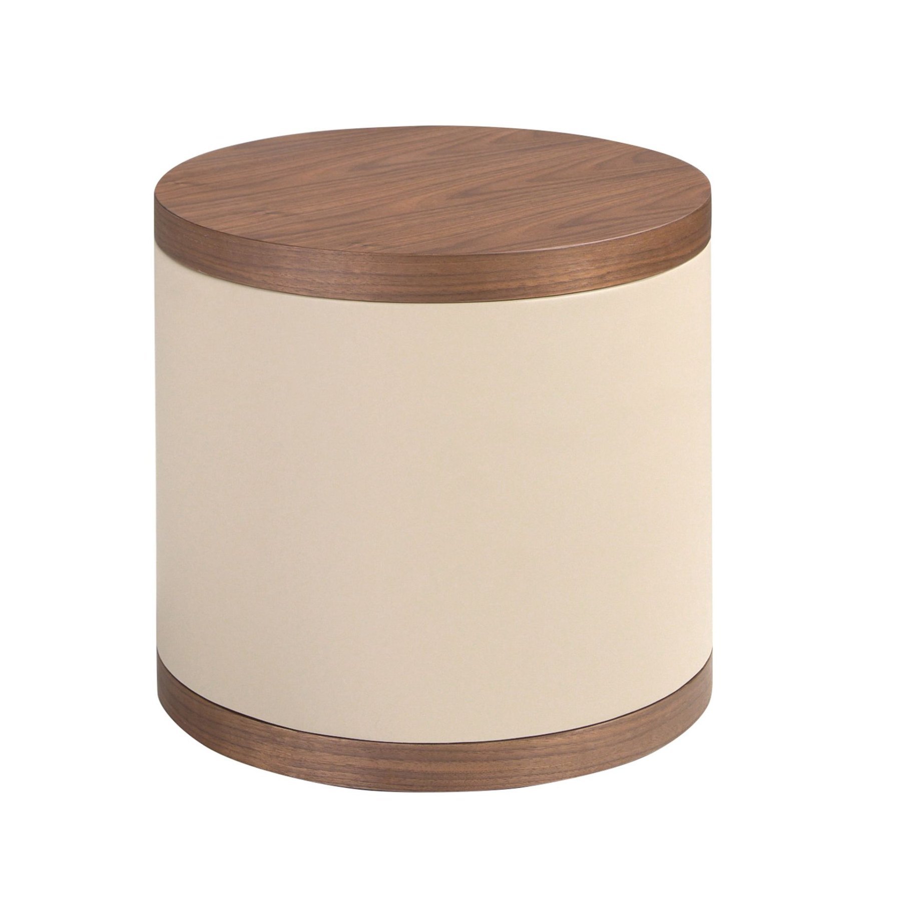 Современная тумбочка с каркасом из натурального орехового шпона, обитого кожзаменителем цвета норки, и оригинальным основанием из шпона орехового цвета. Благодаря элегантной столешнице из натурального орехового шпона, она придаст вашему интерьеру изысканный вид, к которому вы стремитесь. Оригинальная отделка из полированной нержавеющей стали золотого цвета добавит идеальный стильный штрих в вашу гостиную. Она имеет вместительное отделение для хранения с двумя ящиками с системой открывания на язычок и доводчиками.