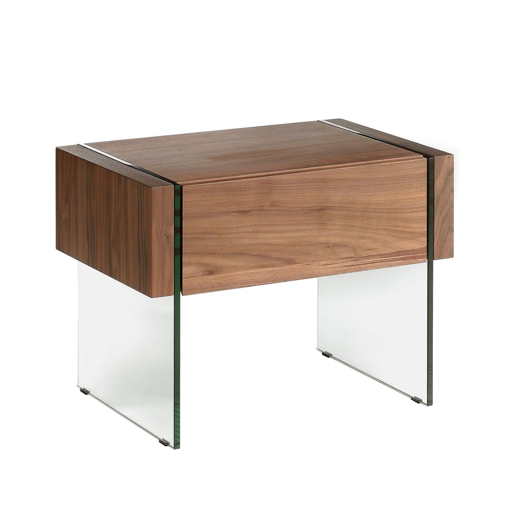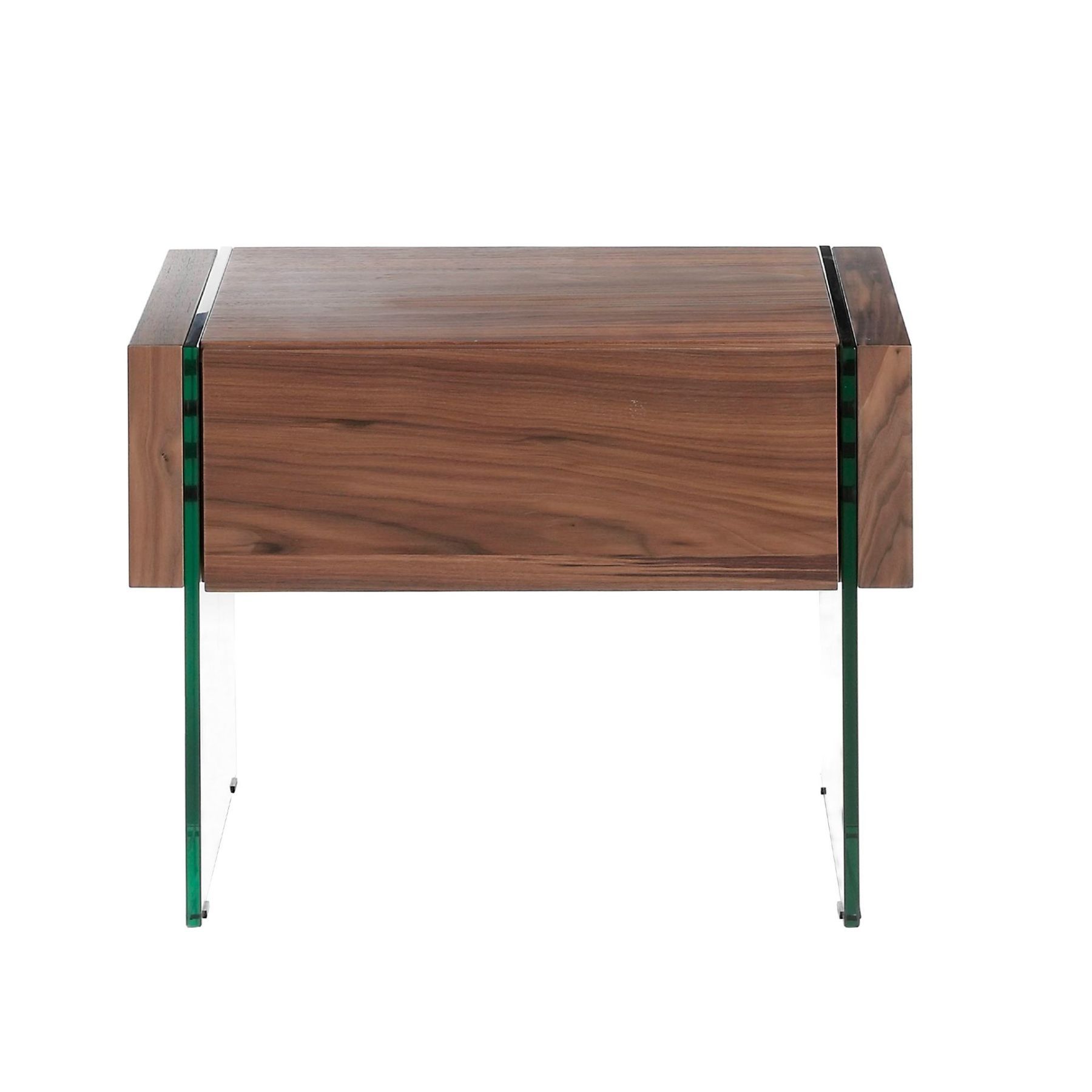 Прикроватная тумбочка CP1803-H-NOGAL от фабрики Angel Cerda – стильное дополнение к интерьеру в спальной комнате. Прикроватная тумбочка CP1803-H-NOGAL остановит взгляд каждого, кто неравнодушен к нестандартным дизайнерским решениям. Экстерьер этой модели удивляет и впечатляет. Стеклянные опоры и абсолютно «обезличенный» передний фасад смотрятся оригинально и стильно. Такая тумбочка станет удачным приобретением для современной спальной комнаты, оформленной в духе минимализма и последних модных тенденций европейского модерна. Каркас тумбочки имеет прямоугольную форму, внутри которого находится выдвижной ящик. Ручка у него отсутствует, а открывание и закрывание осуществляется при помощи доводчика. Материалы изготовления – МДФ и шпон орехового дерева. Они широко распространены в европейских интерьерах, практичны, износостойки. Опирается тумба на две стойки из ударопрочного стекла с металлическими накладками. По бокам стекла удерживают две панели, которые потребуется прикрутить самостоятельно (инструкция и крепеж входят в комплектацию). Вес тумбочки составляет 26 кг. Размеры: ширина – 58 см, высота – 43 см, глубина – 39 см. В коллекцию CP1803 также входят тумба под ТВ, комод, сервант.