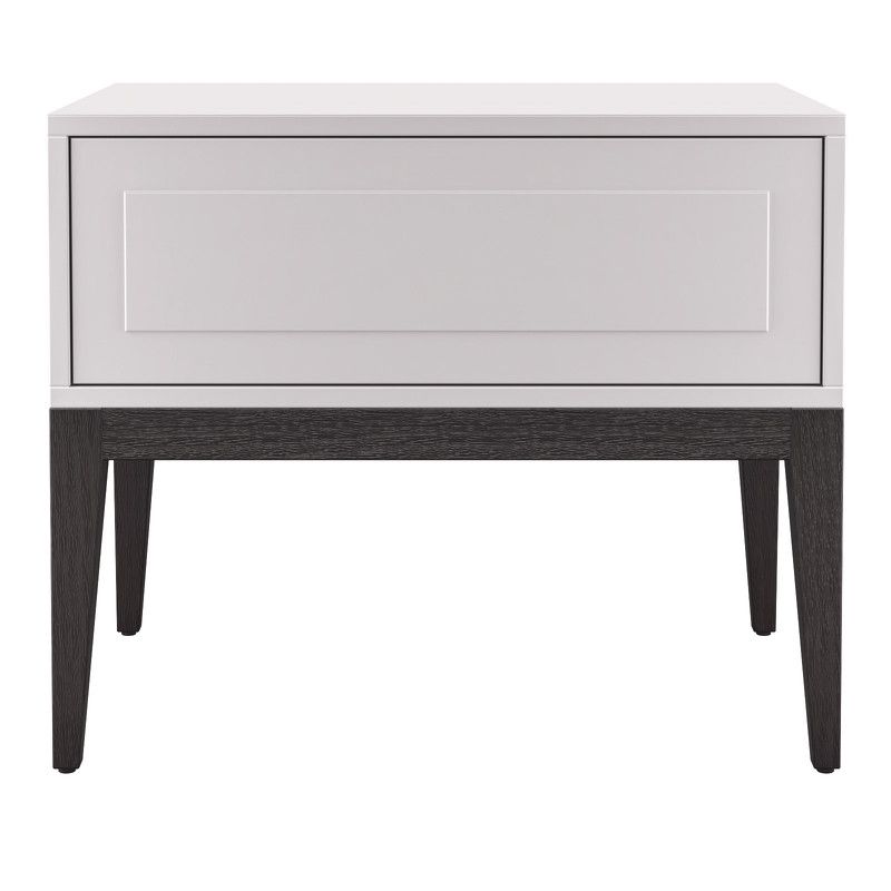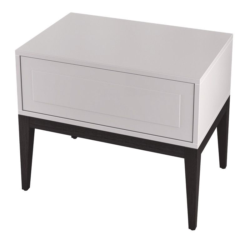 Миниатюрная серая тумбочка с одним ящиком, на высоких ножках из коллекции Marbella от бренда MOD Interiors. Дизайнерская фрезеровка фасадов в лаконичном стиле.