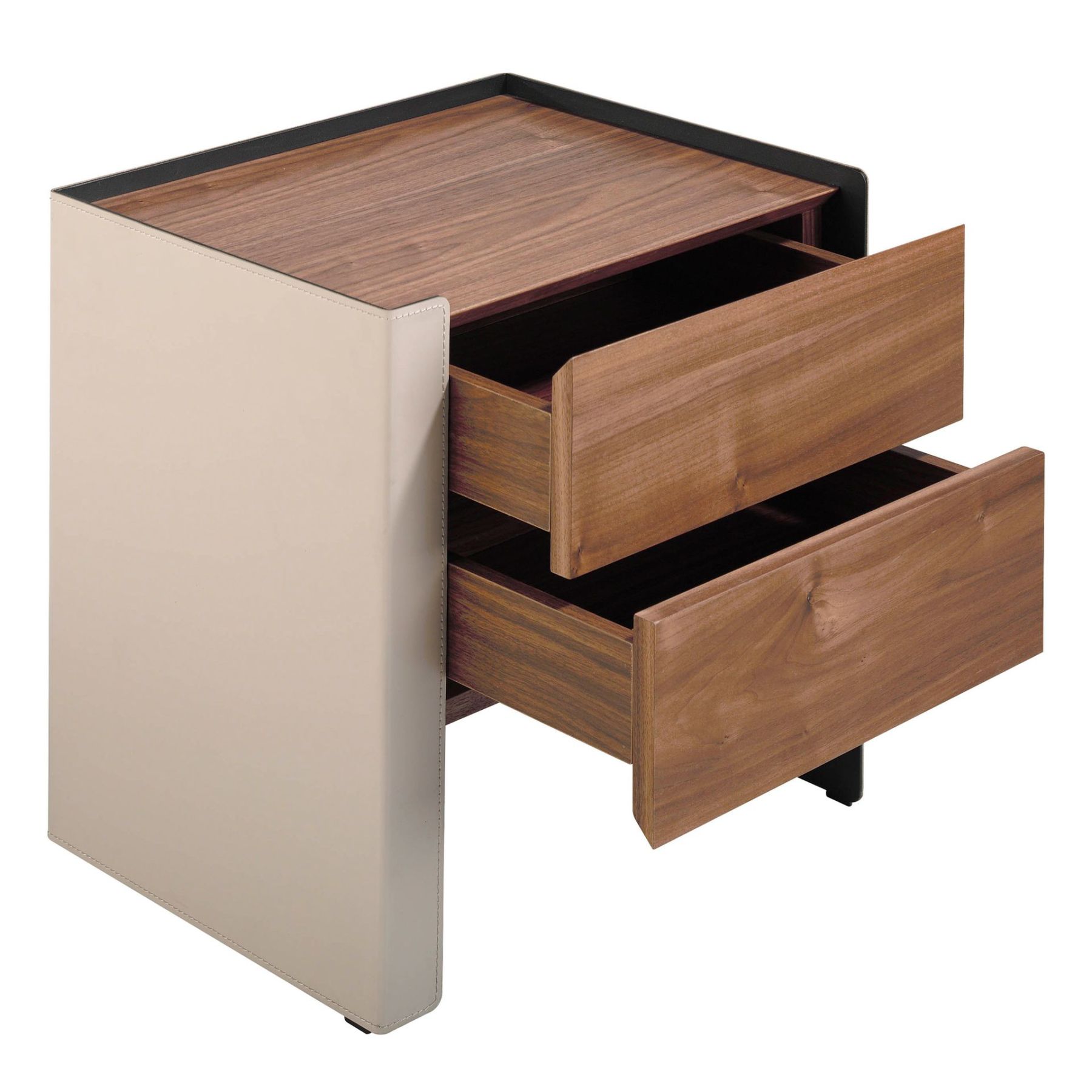Прикроватная тумбочка современного дизайна с каркасом из натурального орехового шпона толщиной 0,5 мм . Элегантнаяи утонченная тумбочка , в которой грецкий орех и переработанная воловья кожа цвета норки были объединены, чтобы обеспечить эту уникальную связь. Благодаря двум ящикам с системой плавного закрывания вы также можете держать все на своем месте и в порядке. Кроме того, вы можете комбинировать тумбочку с нашим комодом из той же коллекции, сделанным из тех же материалов, в авангардном и актуальном стиле.