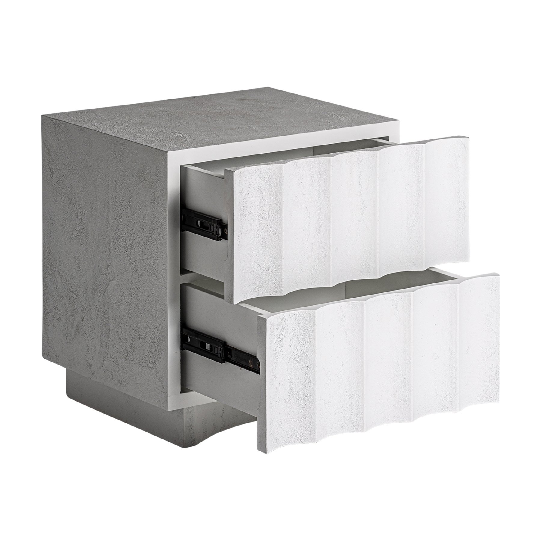 Журнальный столик Mulcey белого цвета в современном стиле. Изготовлен из смолы в сочетании с гравием и древесиной DM.