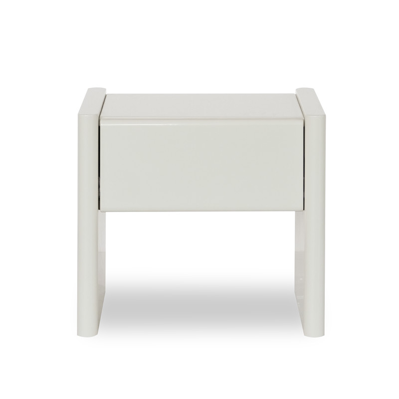 Ее гладкая поверхность, покрытая полиуретановым глянцевым лаком светло-серого оттенка, излучает утонченность и современность, привлекая внимание и подчеркивая общий стиль интерьера. Эта тумбочка станет идеальным компаньоном для Вашей кровати, создавая гармоничное пространство для отдыха.