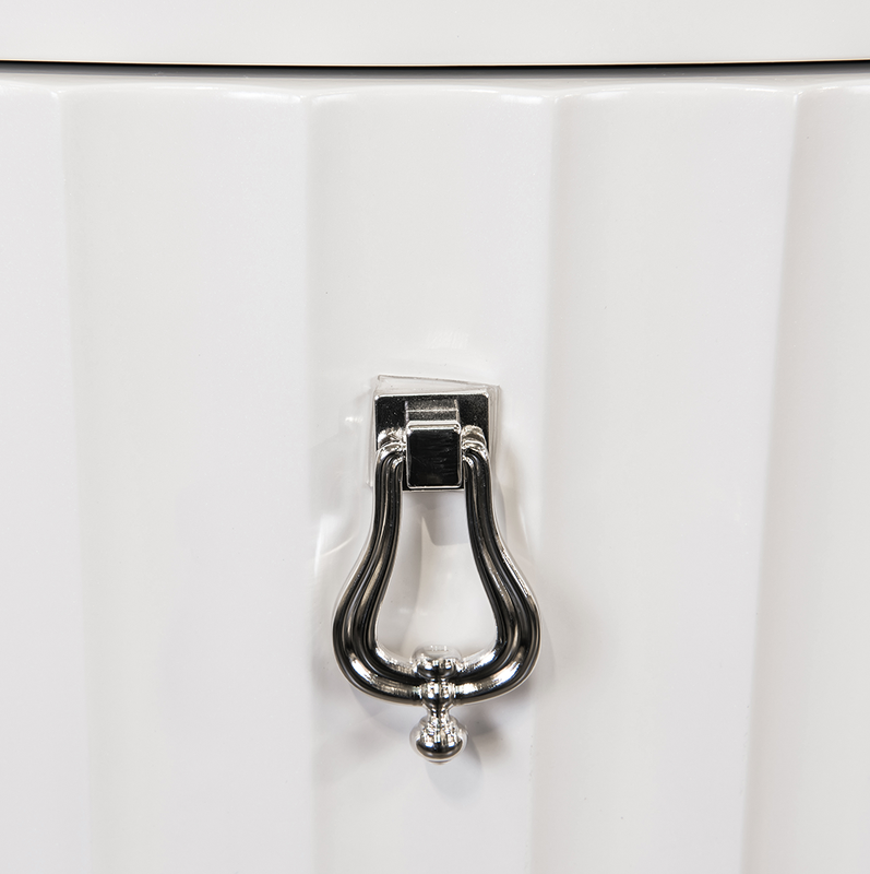 Выполнена из массива дерева и высококачественного МДФ класса Е1. Цвет фурнитуры - хром. Дно ящиков декорировано черной бархатной тканью. Ящики оснащены доводчиками для плавного закрывания. Корпус ящиков - белого цвета.