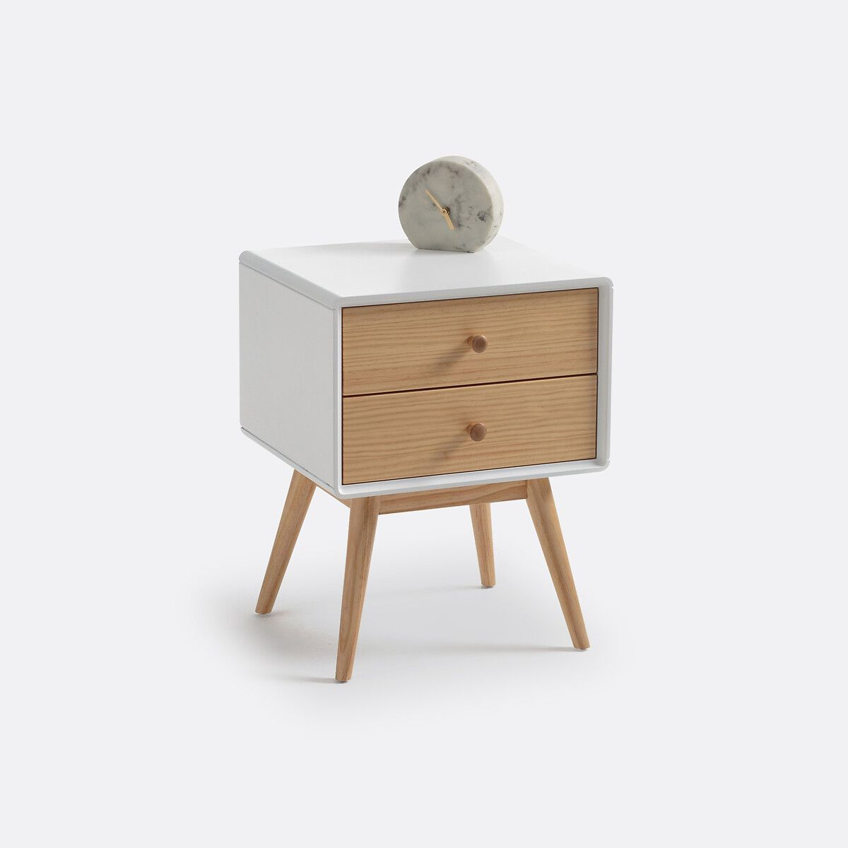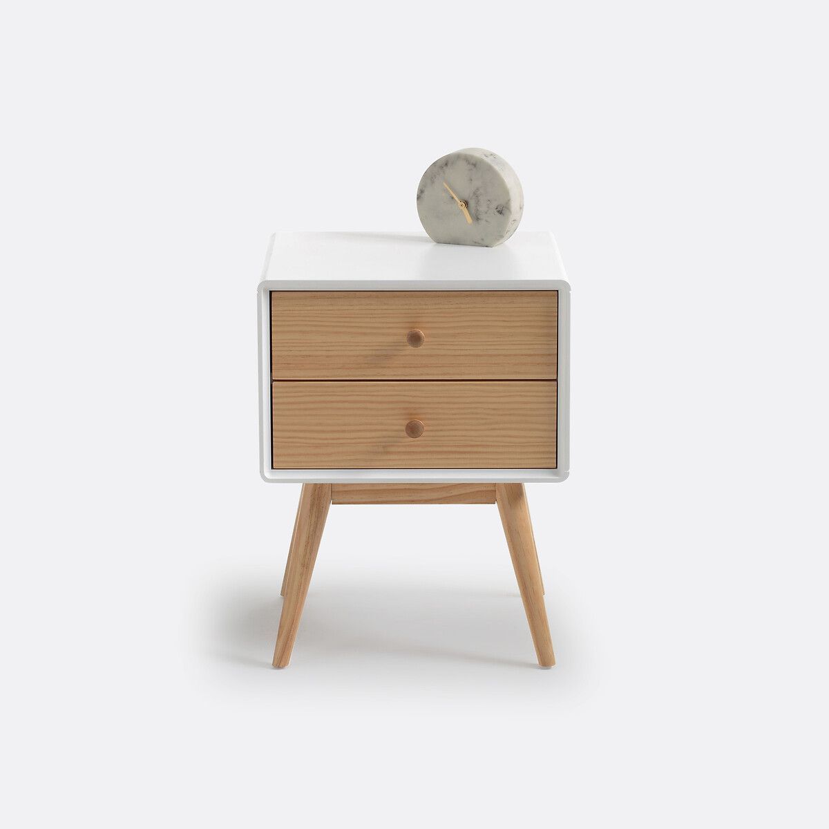 Изящная и модная тумбочка прикроватная с 2 ящиками гармонично довершает изысканный облик современной спальни. Белый корпус создает удивительно нежный контраст с деревянными фасадами.