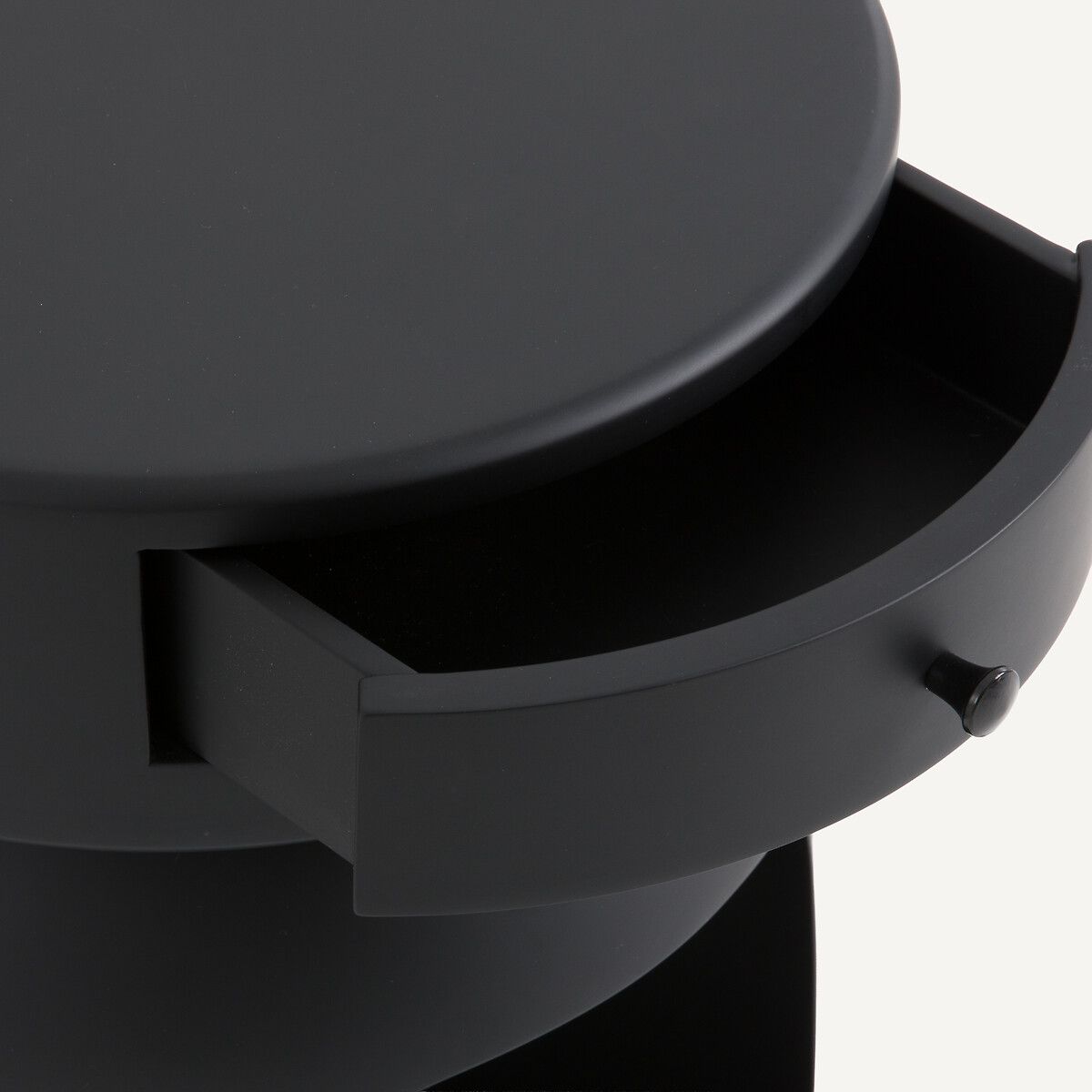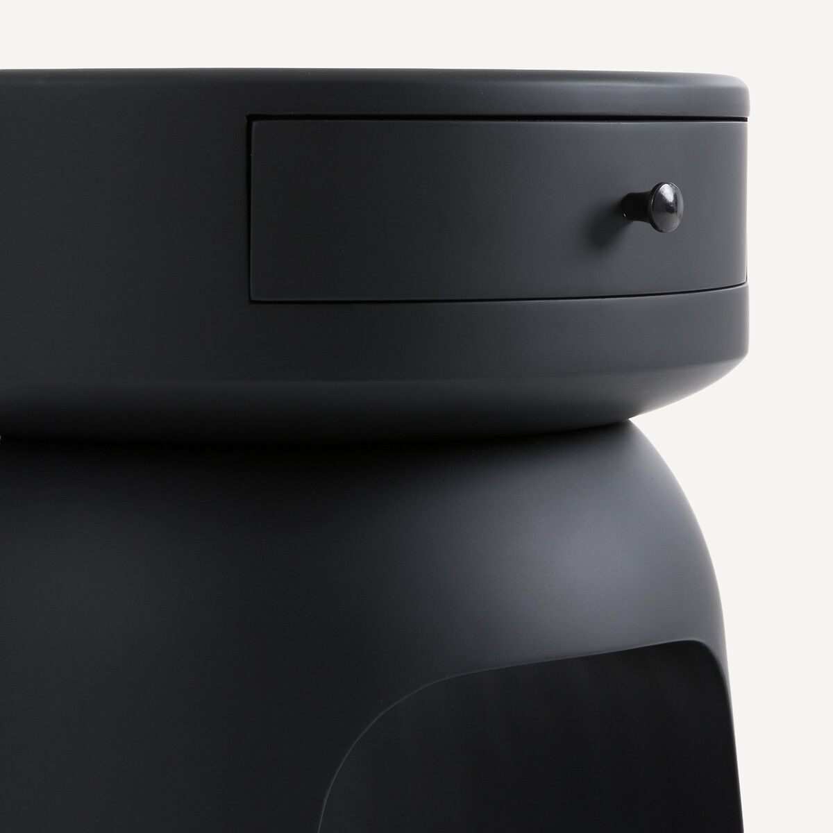 Столик прикроватный Fétiche, изделие от Эммануэля Галлина эксклюзивно для AMPM. Fétiche – предмет мебели игривой формы, ажурная скульптура, выполненная из окрашенной в черный цвет МДФ со слегка сатинированной поверхностью. Под его личиной предмета декора на границе племенного искусства скрываются функциональные возможности такие, как маленький ящик под столешницей и ниша для книг.