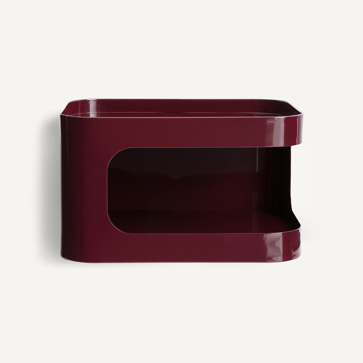 Прикроватная тумба, оснащенная столешницей и открытой нишей, крепится рядом с кроватью на любой желаемой высоте.