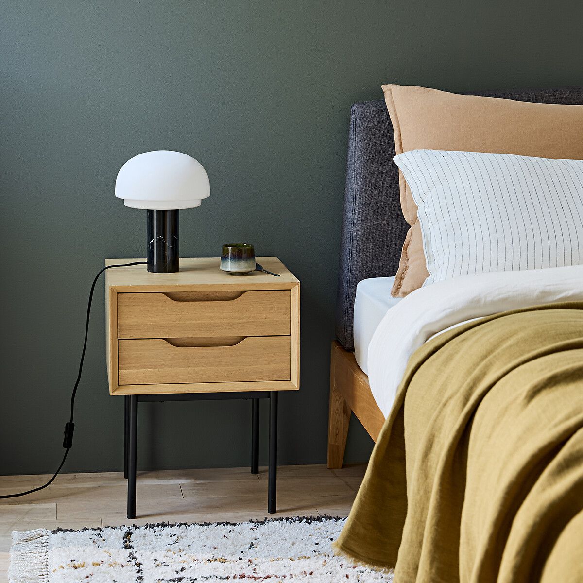 Сочетание дерева и металла позволяет ему адаптироваться к любому стилю интерьера. Столик у изголовья Noyeto с 2 ящиками. Изделие наших дизайнеров La Redoute Intérieurs.