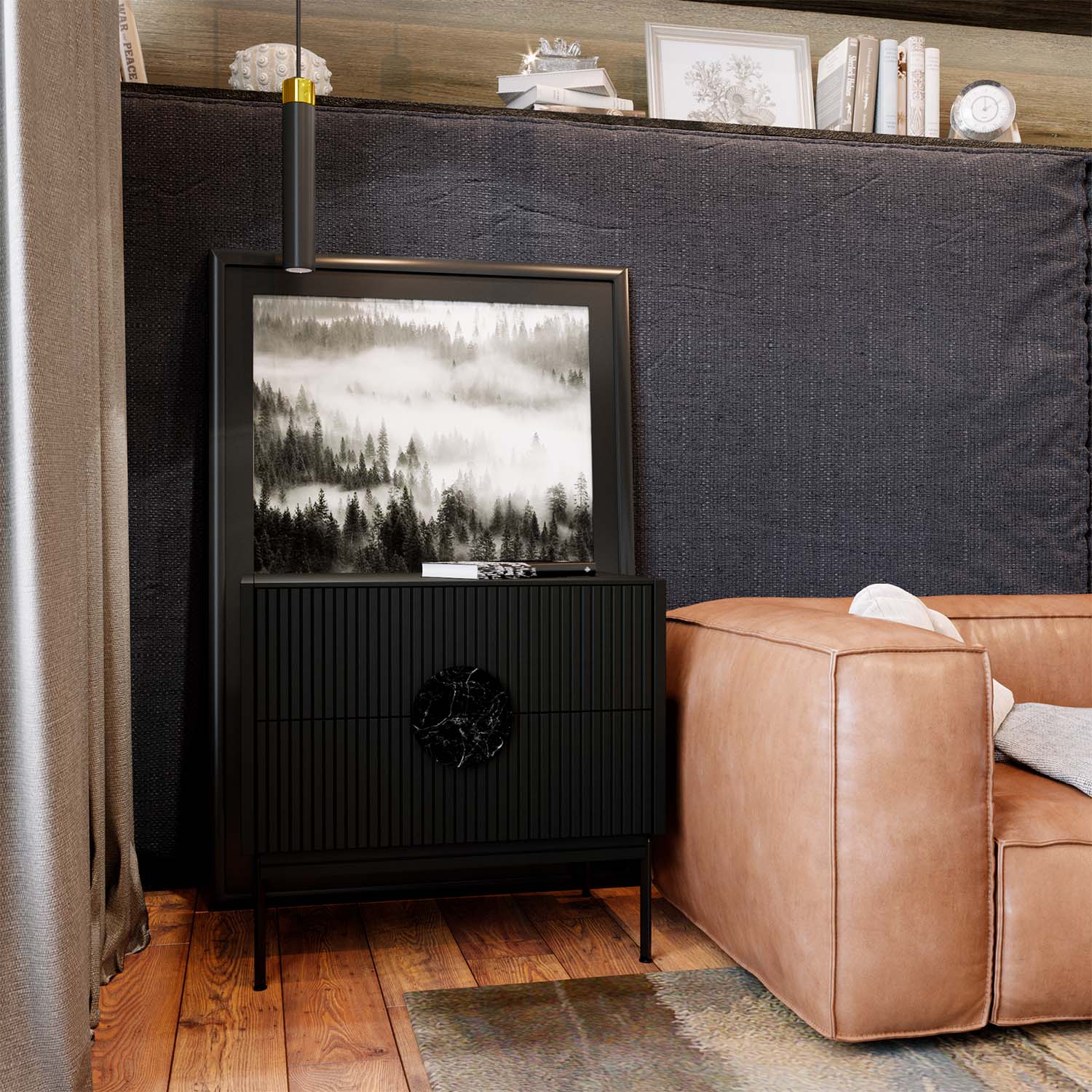 Выдвижные ящики оснащены доводчиками Корпус эмаль ral 9011, ножки- черная эмаль, ral 9011