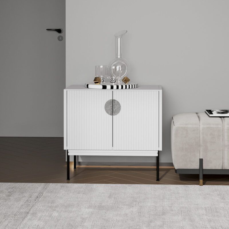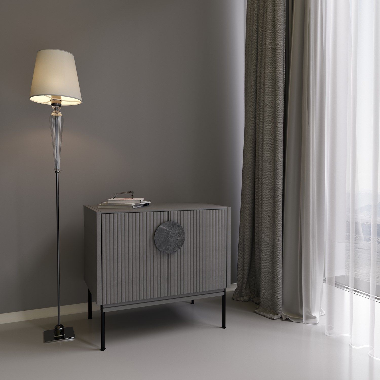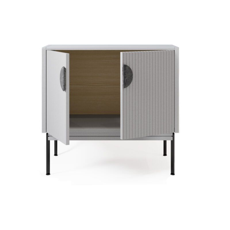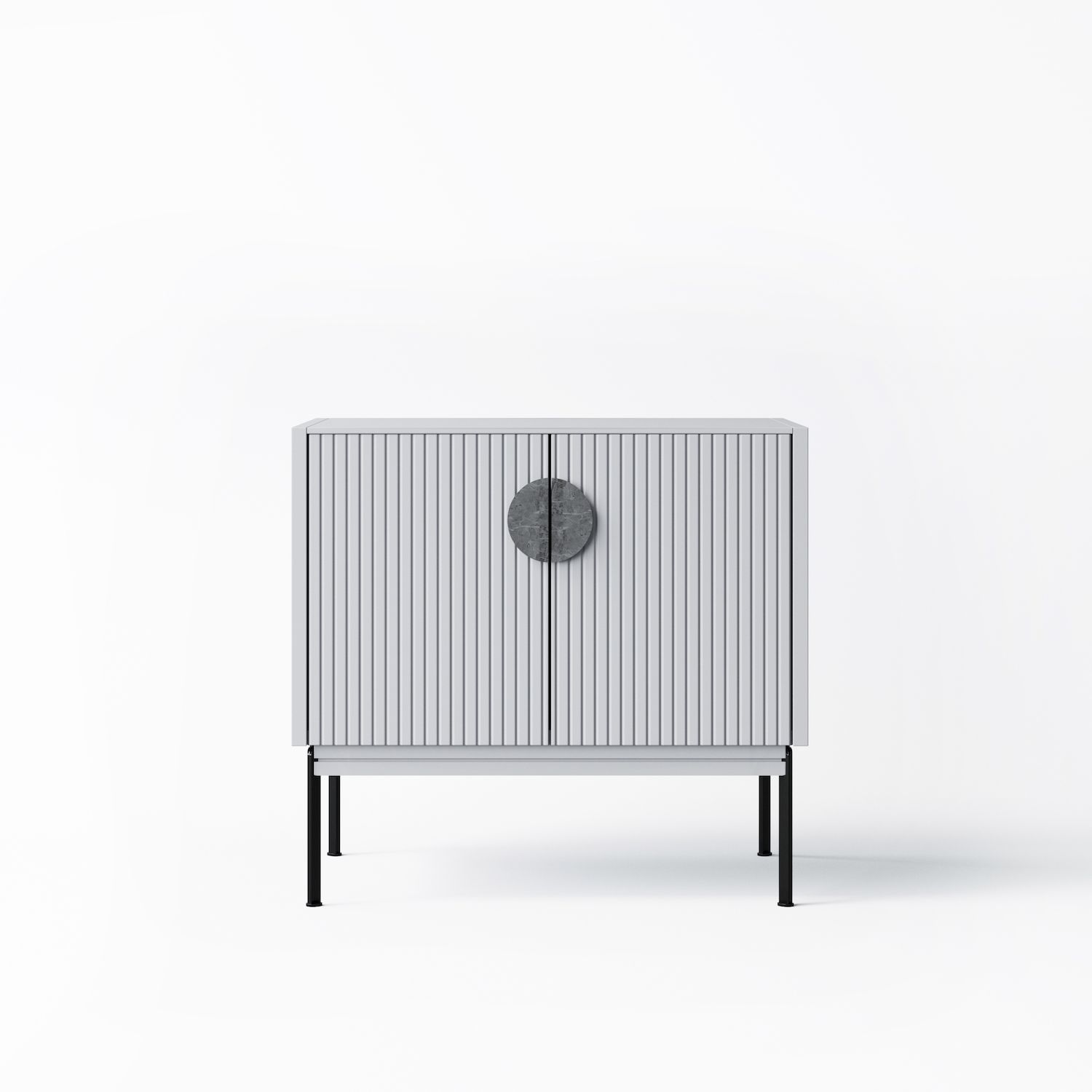 Распашные дверцы тумбы оснащены петлями с доводчиками плавного закрывания Корпус эмаль ral 7047, ножки- черная эмаль, ral 9011