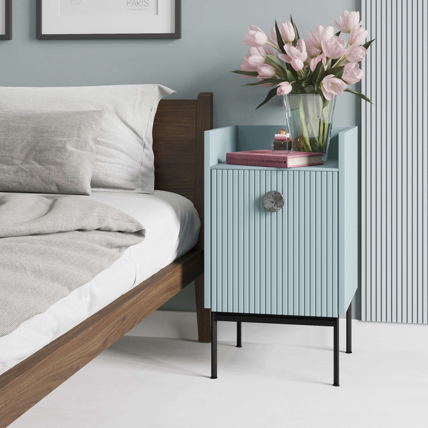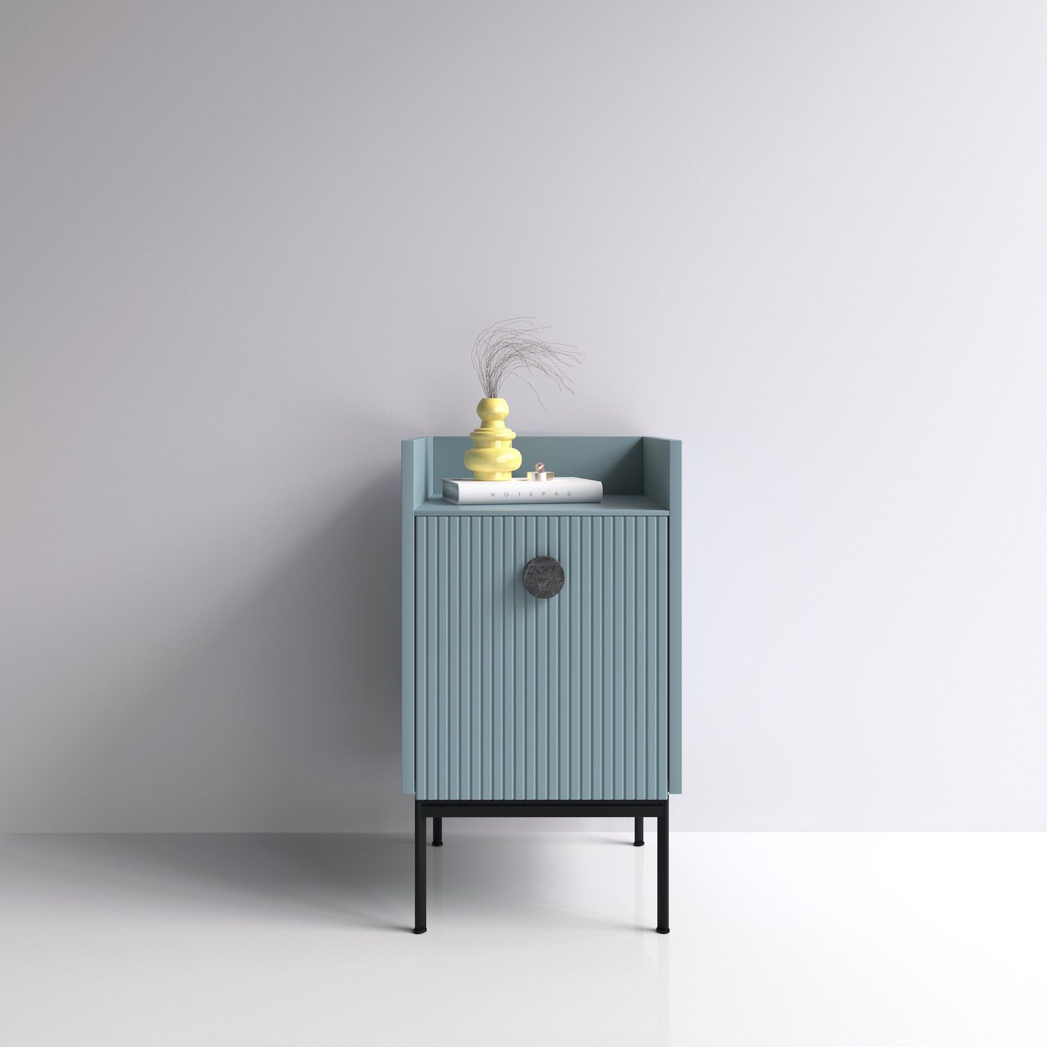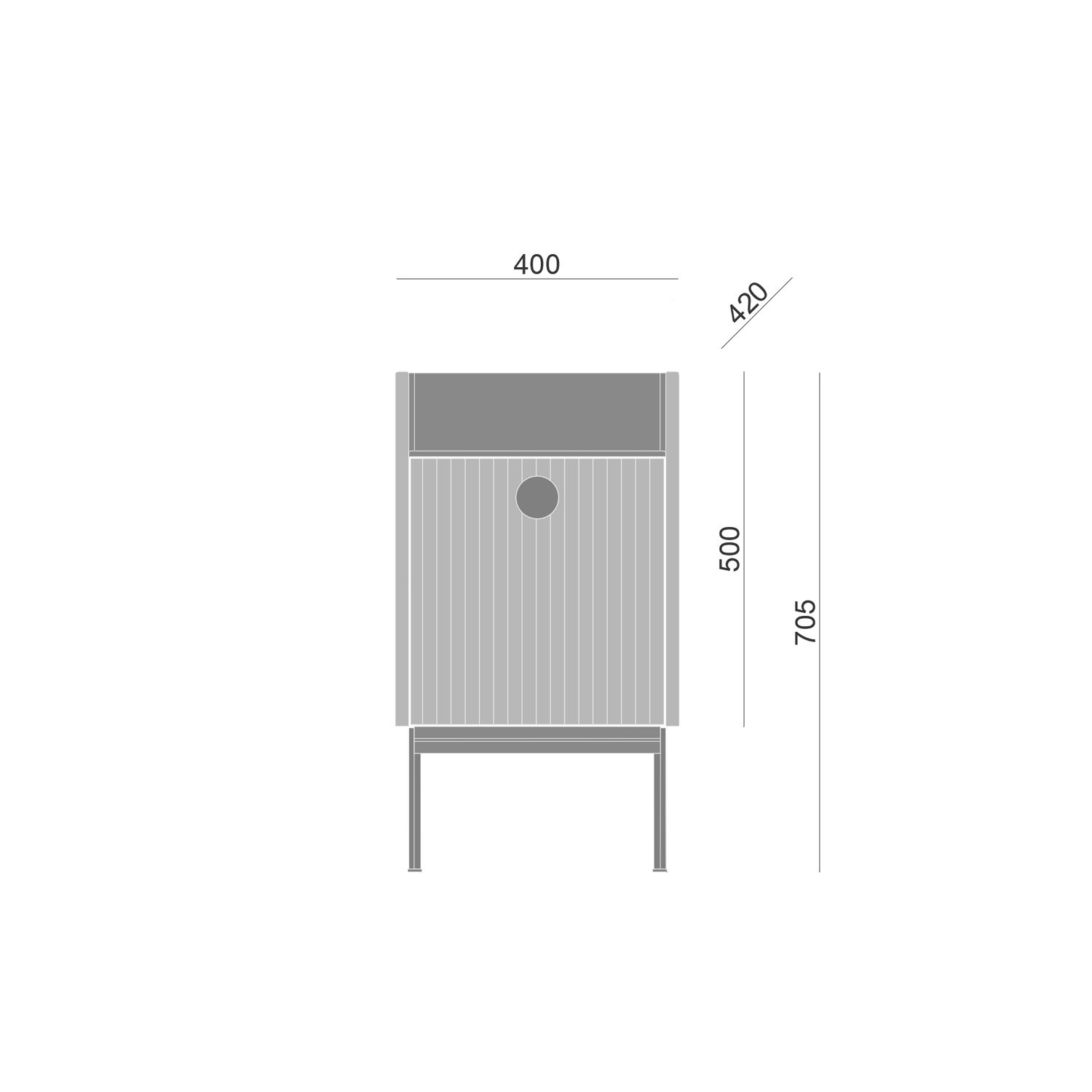 Распашная дверца тумбы оснащена петлями с доводчиками плавного закрывания по центру одна полка. Корпус-эмаль ral design 220-70-10, основание и ножки-эмаль ral 9011