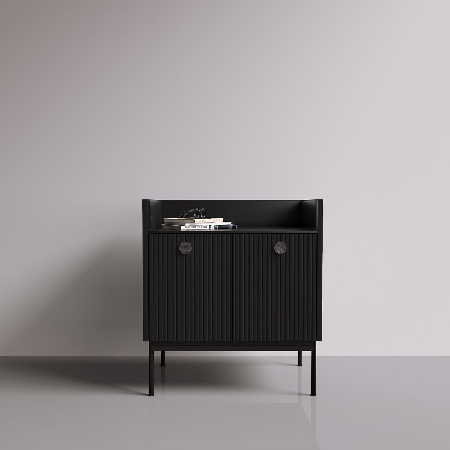 Распашные дверцы тумбы оснащены петлями с доводчиками плавного закрывания Корпус эмаль ral 9011, ниша эмаль ral 9011, ножки- черная эмаль, ral 9011