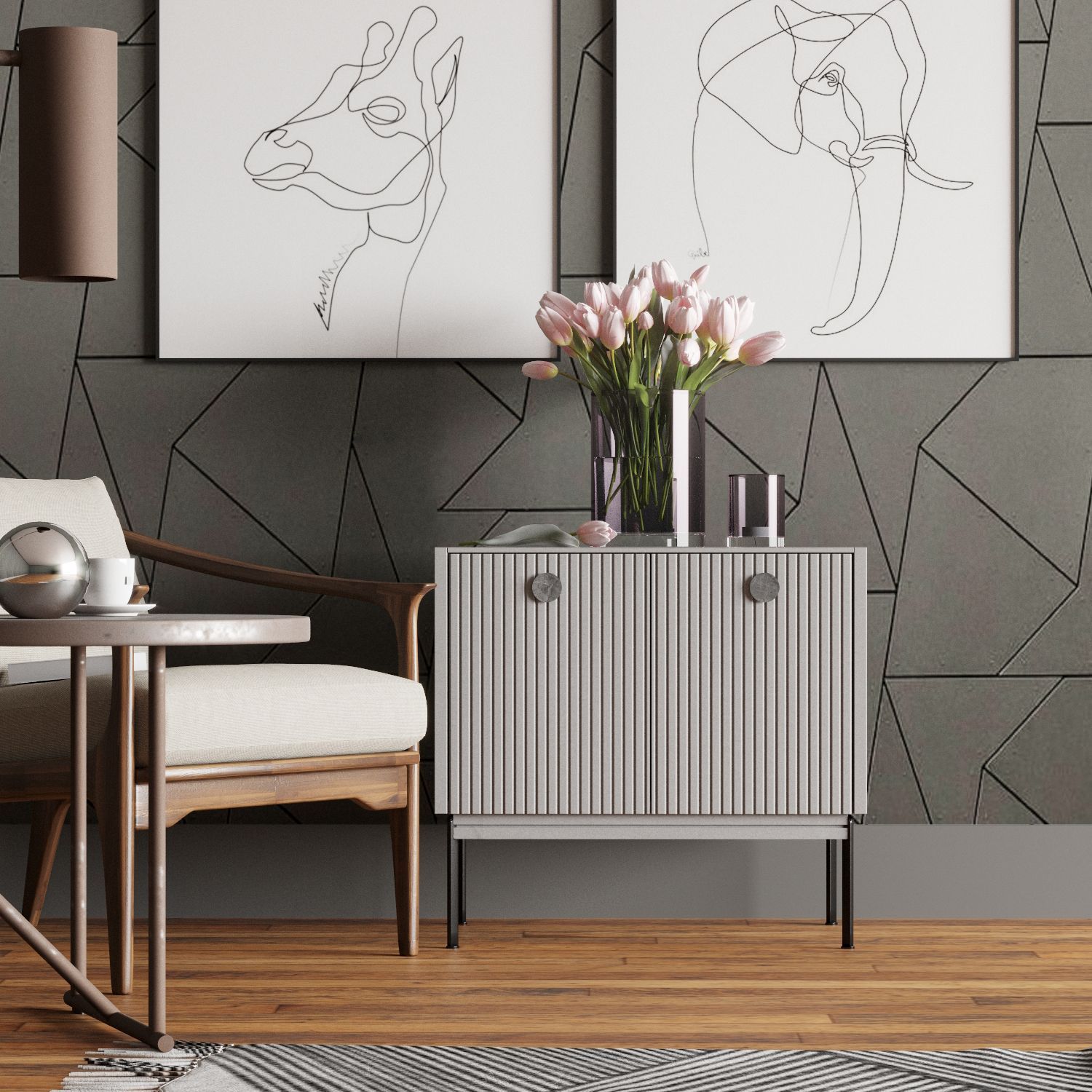 Распашные дверцы тумбы оснащены петлями с доводчиками плавного закрывания Корпус эмаль ral 7047, ножки- черная эмаль, ral 9011