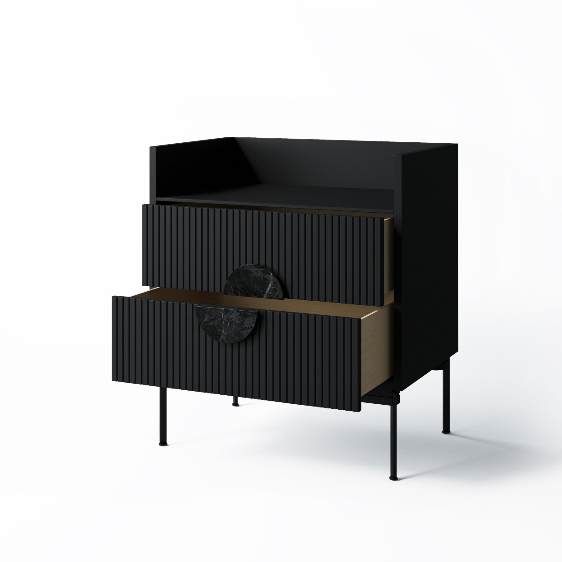 Выдвижные ящики оснащены доводчиками Корпус эмаль ral 9011, ножки- черная эмаль, ral 9011