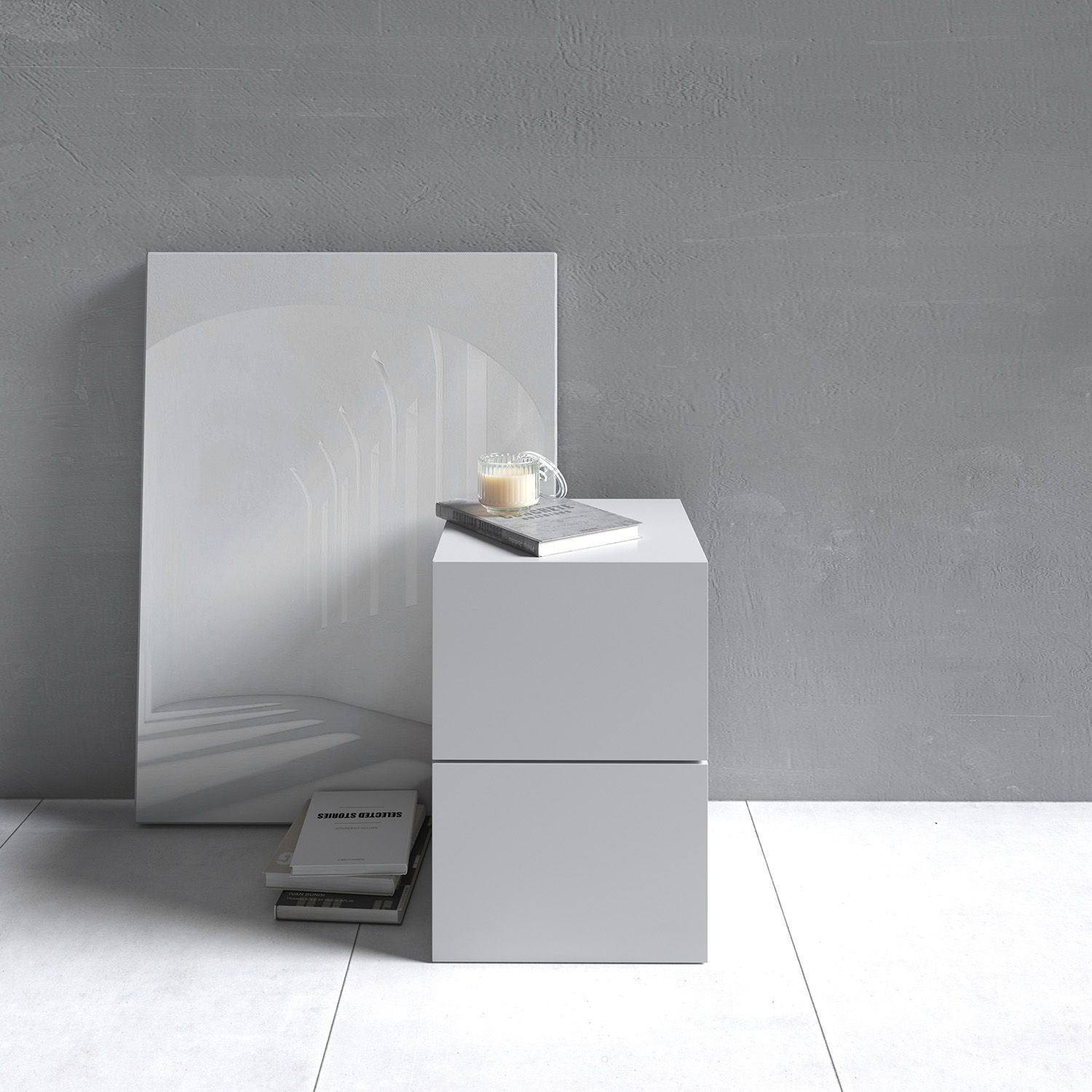 Яркий цвет,но при этом строгая форма ,сделают выразительным Ваш интерьер и подчеркнут современный и безупречный стиль.Можно использовать любой из сторон. Два вместительных ящика, оснащены направляющими плавного хода, полного выдвижения с открытием нажатием (PUSH). Материалы: мдф, эмаль. Эмаль светло-серая ral 7047