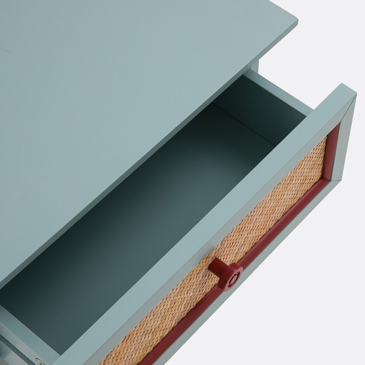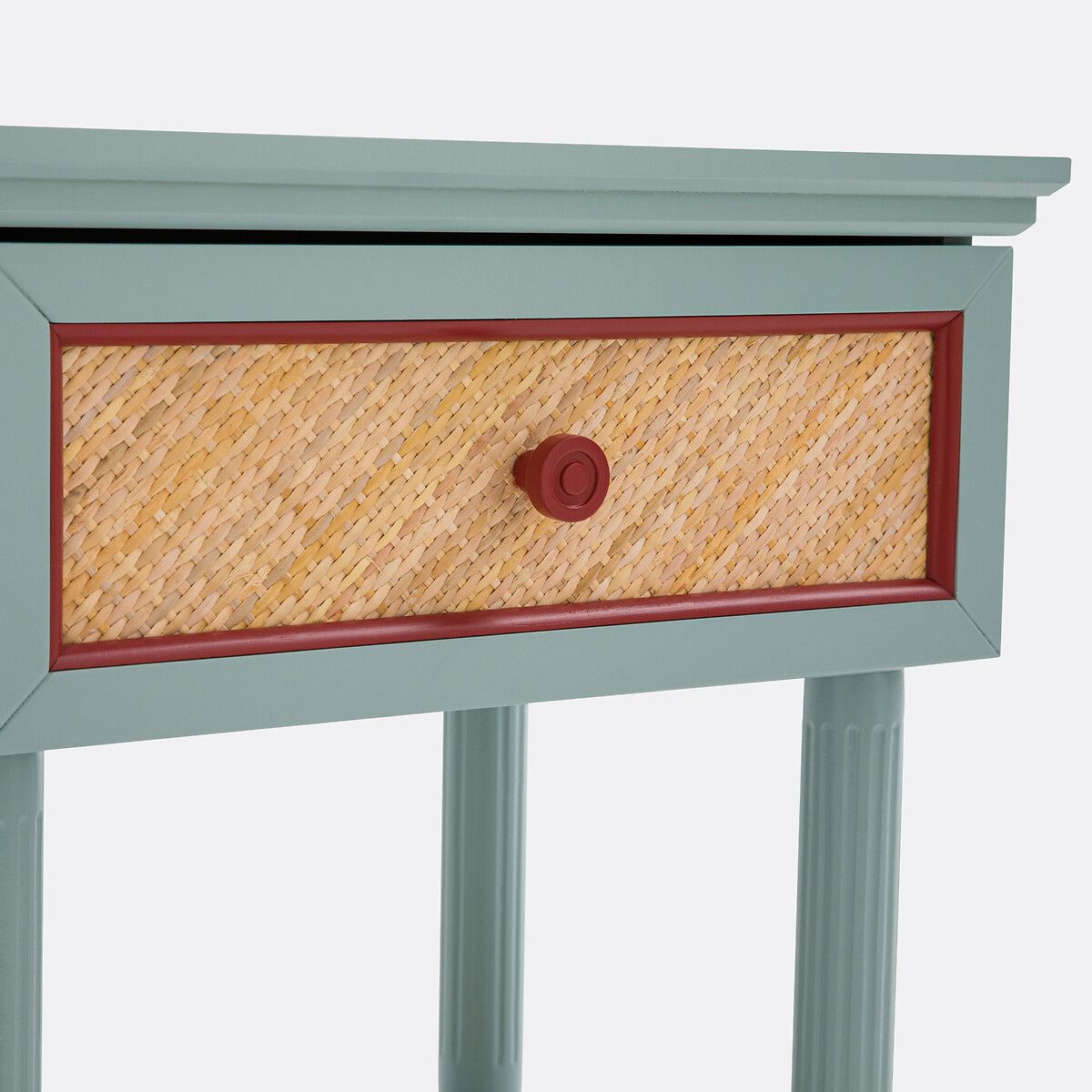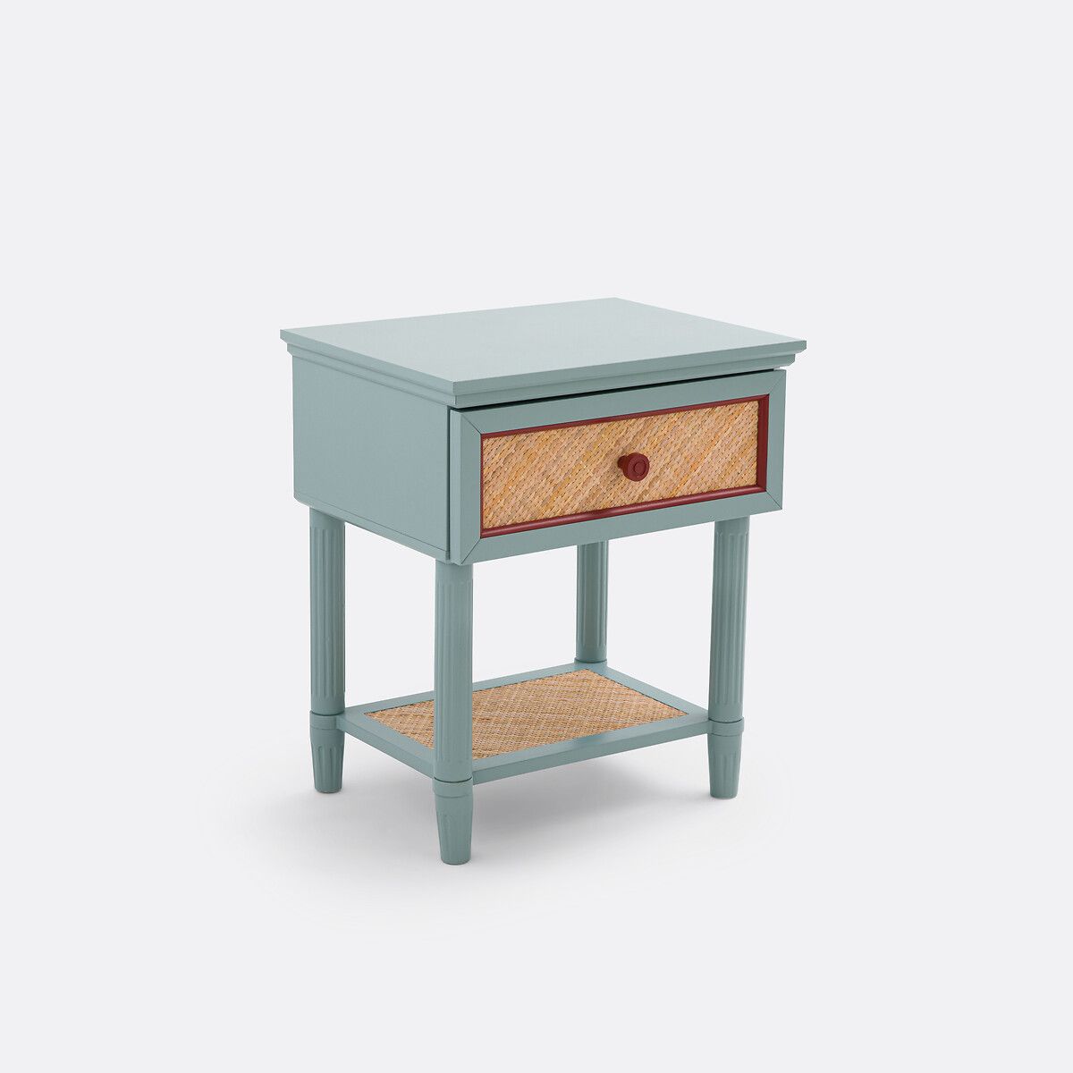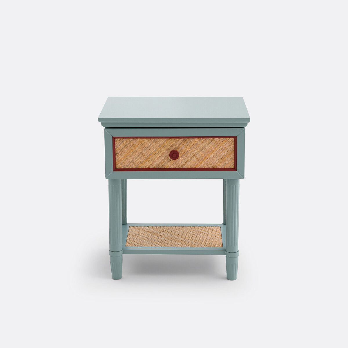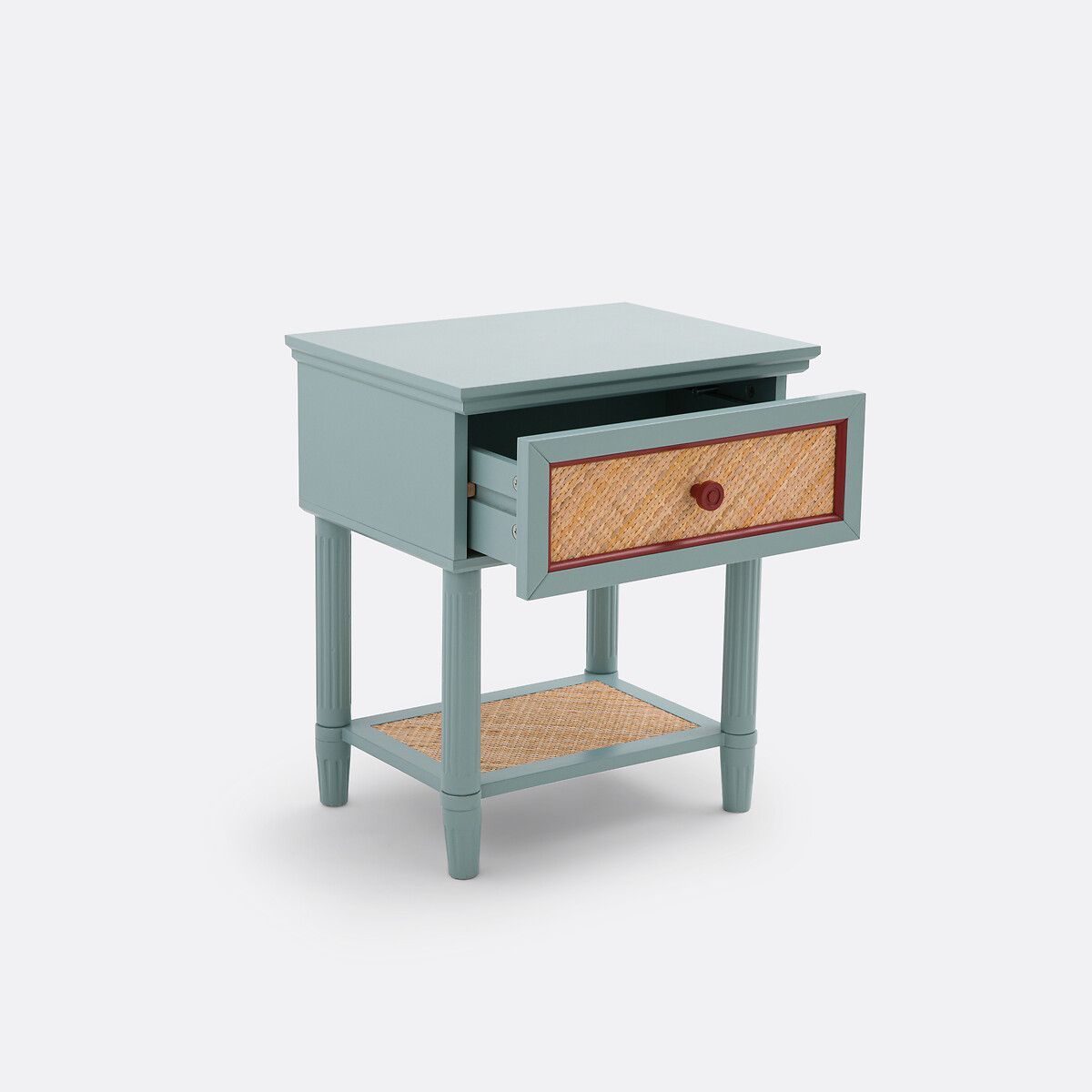 В стилистике блошиного рынка и с дачным колоритом. Тумба Sidore наделена шармом винтажной мебели: дерево, окрашенное в нежных пастельных тонах, и фасад ящика из ротанга с контрастной рамкой. Идеально подходит для создания атмосферы потертого шика в спальне.