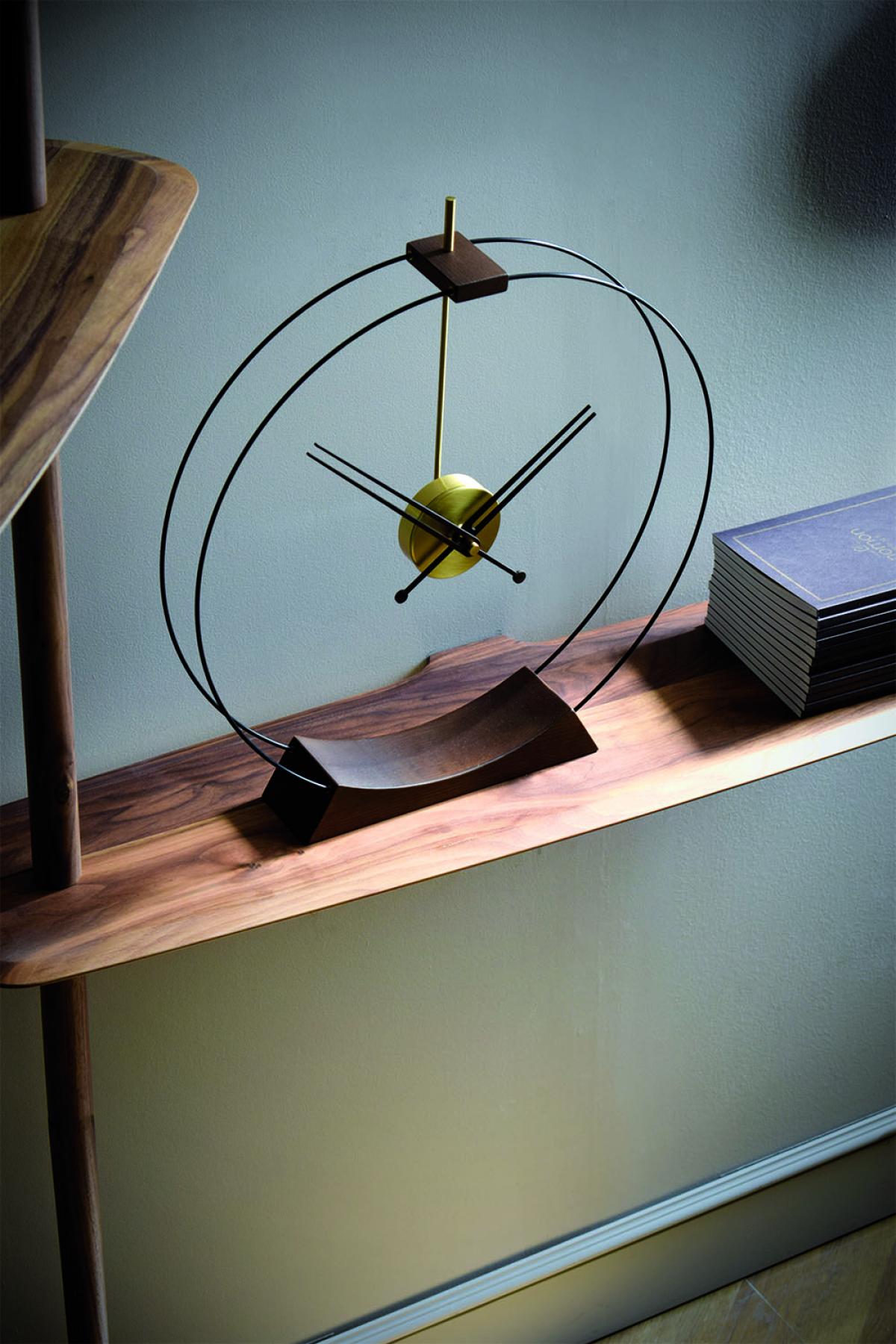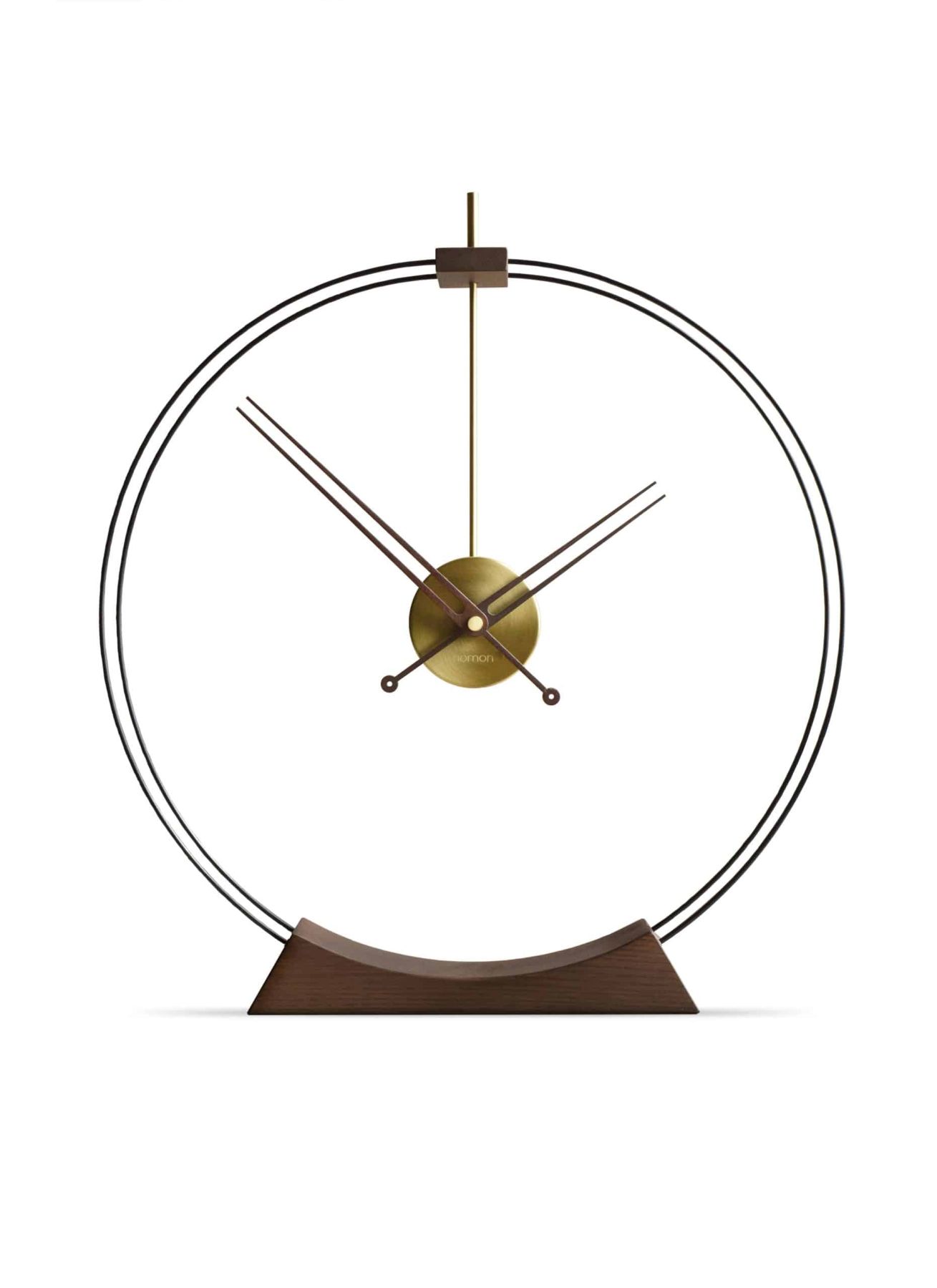 Производитель часов Nomon славится любовью к лёгким, почти невесомым конструкциям. Вот и эта модель совершенно справедливо носит своё поэтичное название: ‘aire’ — так звучит “воздух” по-испански.Немецкий кварцевый механизм UTS, безусловно, справляется со своей функцией на высший балл, но в настольных часах Aire первостепенное значение имеет не точность хода, а осмысленный в каждой детали дизайн. В этом образе дизайнер попытался ухватить саму сущность времени — ускользающего, миражного, растворяющегося в воздухе. Получился эффектный аксессуар. Такие настольные часы можно купить в кабинет, гостиную, спальню в современном стиле.Корпус и стрелки выполнены из древесины ясеня. Финишная полировка придаёт им дорогой лоск. Кольца “циферблата” изготовлены из фибергласа — прочного материала на основе стекла и пластика, способного героически выдерживать любые бытовые нагрузки.