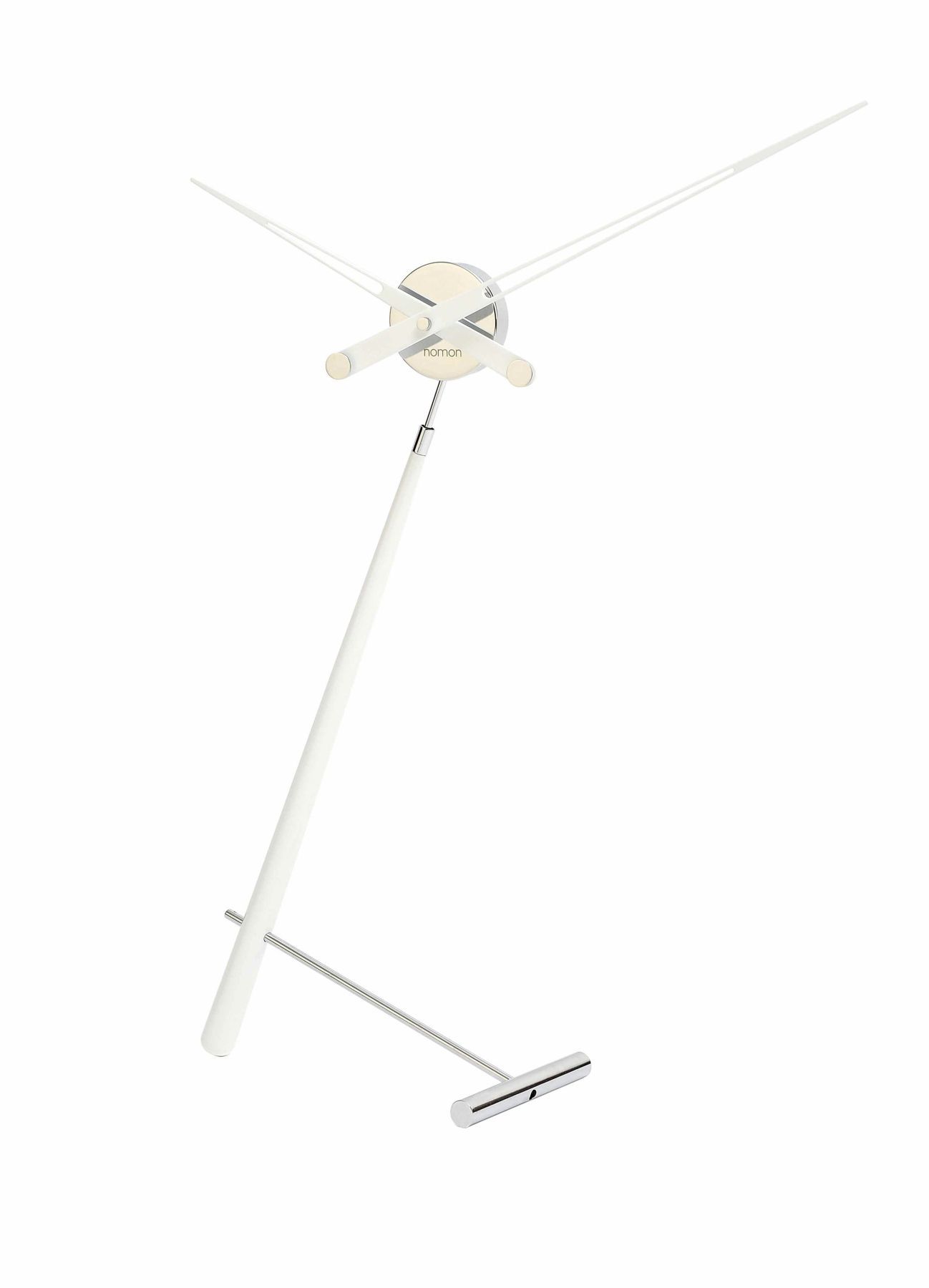 Настольные часы Nomon Puntero¶Оригинальные настольные часы Puntero от испанской компании Nomon изготовлены из металла и массива ореха. Диаметр окружности, описываемой большой стрелкой, составляет 73 см. Максимальная высота этих настольных часов составляет 94 см и достигается при прохождении большой стрелкой условной цифры «12». Бесшумную работу и безупречную точность часам обеспечивает кварцевый механизм UTS (производство Германия). Настольные часы Puntero представлены в трех версиях:¶Puntero N – изготовлены из хромированной стали и массива ореха естественного цвета, либо в отделке «венге».¶Puntero L – изготовлены из хромированной стали и массива ореха, покрытого глянцевым лаком одного из трех цветов (черный, белый, красный).¶Puntero Gold N – изготовлены из полированной меди и массива ореха естественного цвета либо в отделке «венге». ¶Купить дизайнерские настольные часы Puntero от Nomon Вы можете на нашем сайте.