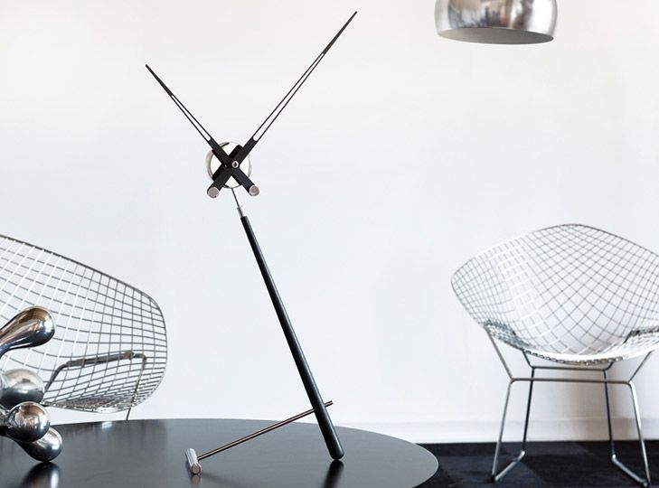 Настольные часы Nomon Puntero¶Оригинальные настольные часы Puntero от испанской компании Nomon изготовлены из металла и массива ореха. Диаметр окружности, описываемой большой стрелкой, составляет 73 см. Максимальная высота этих настольных часов составляет 94 см и достигается при прохождении большой стрелкой условной цифры «12». Бесшумную работу и безупречную точность часам обеспечивает кварцевый механизм UTS (производство Германия). Настольные часы Puntero представлены в трех версиях:¶Puntero N – изготовлены из хромированной стали и массива ореха естественного цвета, либо в отделке «венге».¶Puntero L – изготовлены из хромированной стали и массива ореха, покрытого глянцевым лаком одного из трех цветов (черный, белый, красный).¶Puntero Gold N – изготовлены из полированной меди и массива ореха естественного цвета либо в отделке «венге». ¶Купить дизайнерские настольные часы Puntero от Nomon Вы можете на нашем сайте.