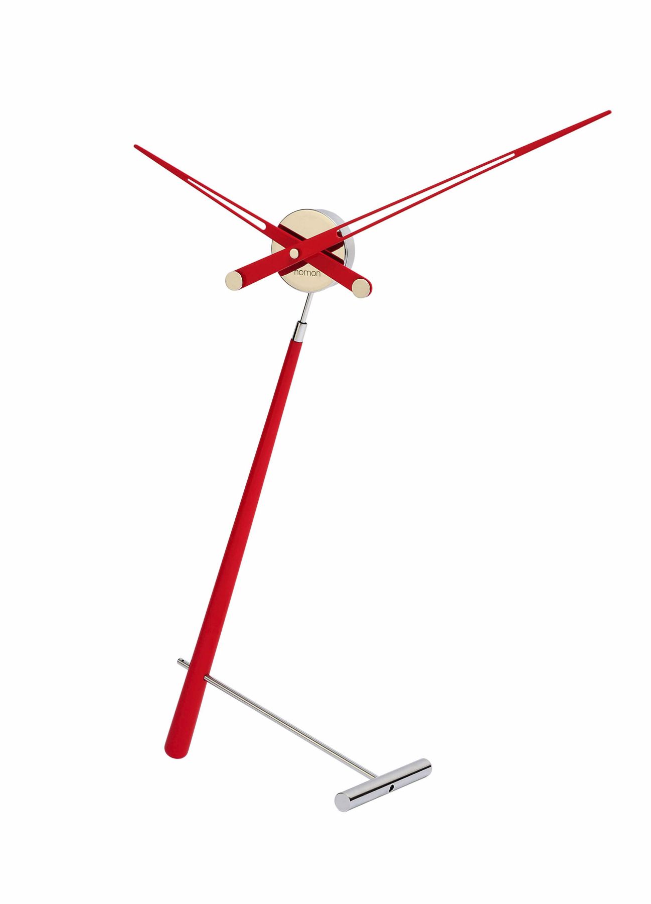 Настольные часы Nomon Puntero¶Оригинальные настольные часы Puntero от испанской компании Nomon изготовлены из металла и массива ореха. Диаметр окружности, описываемой большой стрелкой, составляет 73 см. Максимальная высота этих настольных часов составляет 94 см и достигается при прохождении большой стрелкой условной цифры «12». Бесшумную работу и безупречную точность часам обеспечивает кварцевый механизм UTS (производство Германия). Настольные часы Puntero представлены в трех версиях:¶Puntero N – изготовлены из хромированной стали и массива ореха естественного цвета, либо в отделке «венге».¶Puntero L – изготовлены из хромированной стали и массива ореха, покрытого глянцевым лаком одного из трех цветов (черный, белый, красный).¶Puntero Gold N – изготовлены из полированной меди и массива ореха естественного цвета либо в отделке «венге».   ¶Купить дизайнерские настольные часы Puntero от Nomon Вы можете на нашем сайте.