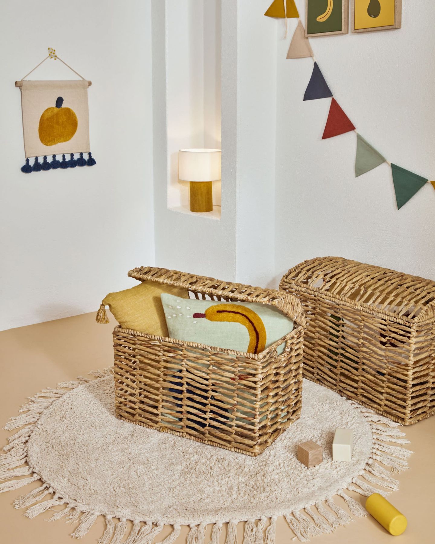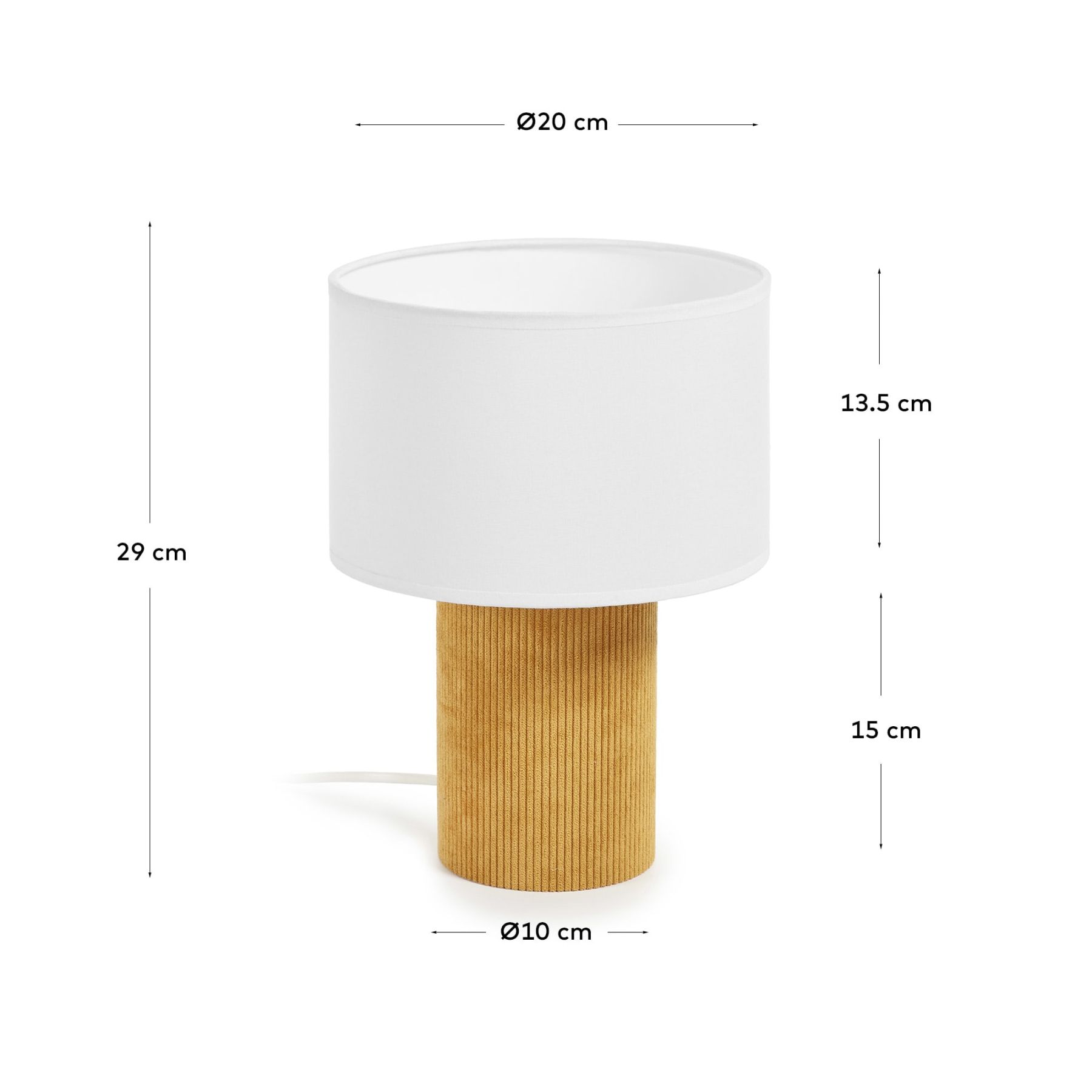 Настольная лампа с вельветовым основанием. Абажур из белой ткани. Переключатель в комплекте. В мини-размере высотой 29 см, чтобы адаптироваться к комнате вашего малыша. Чтобы осветить этот дизайн, добавьте одну из наших лампочек Bulb LED E27 мощностью менее 40 Вт.