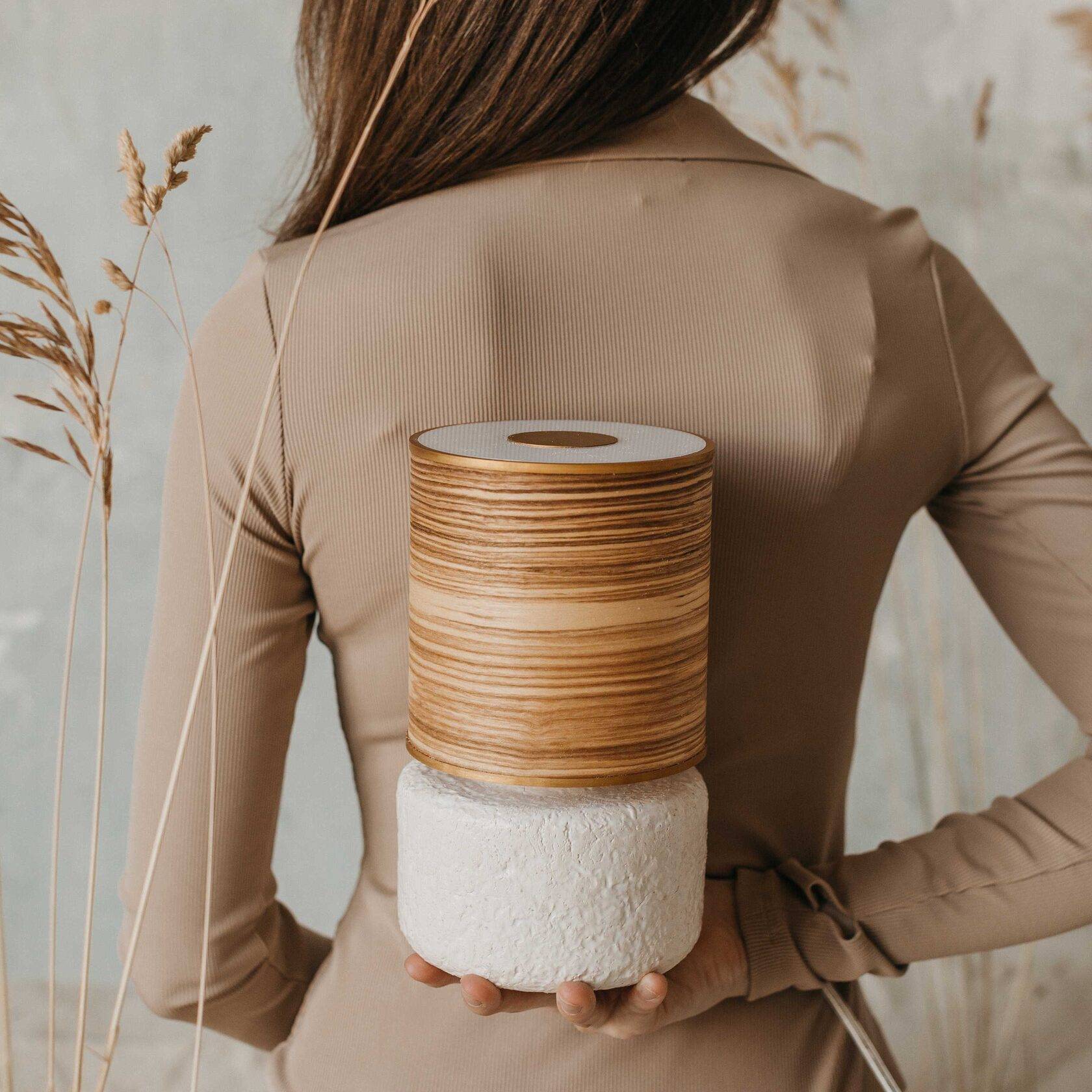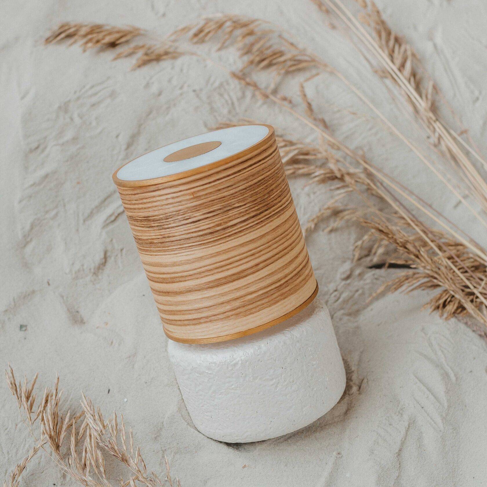 Настольные лампы Dune из натурального оливкового ясеня и керамики сделаны с metal-touch диммером и возможностью плавной регулировки освещения. Просто прикоснитесь к металлическому диску по центру плафона.