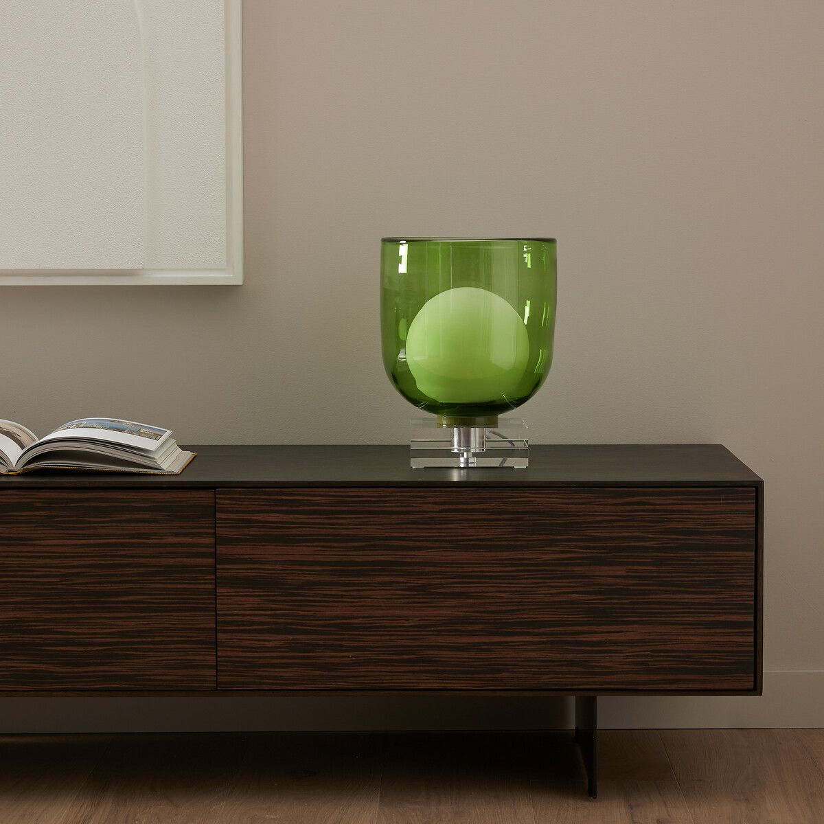Шар из опалового стекла подчеркивает прозрачную форму кубка из дутого стекла, окрашенного в массе. Идеальна на буфете или консоли современное декоративное изделие от AMPM.