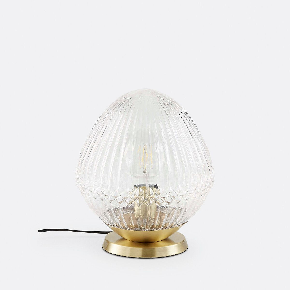 — Лампа из металла с отделкой под латунь, абажур из граненого стекла