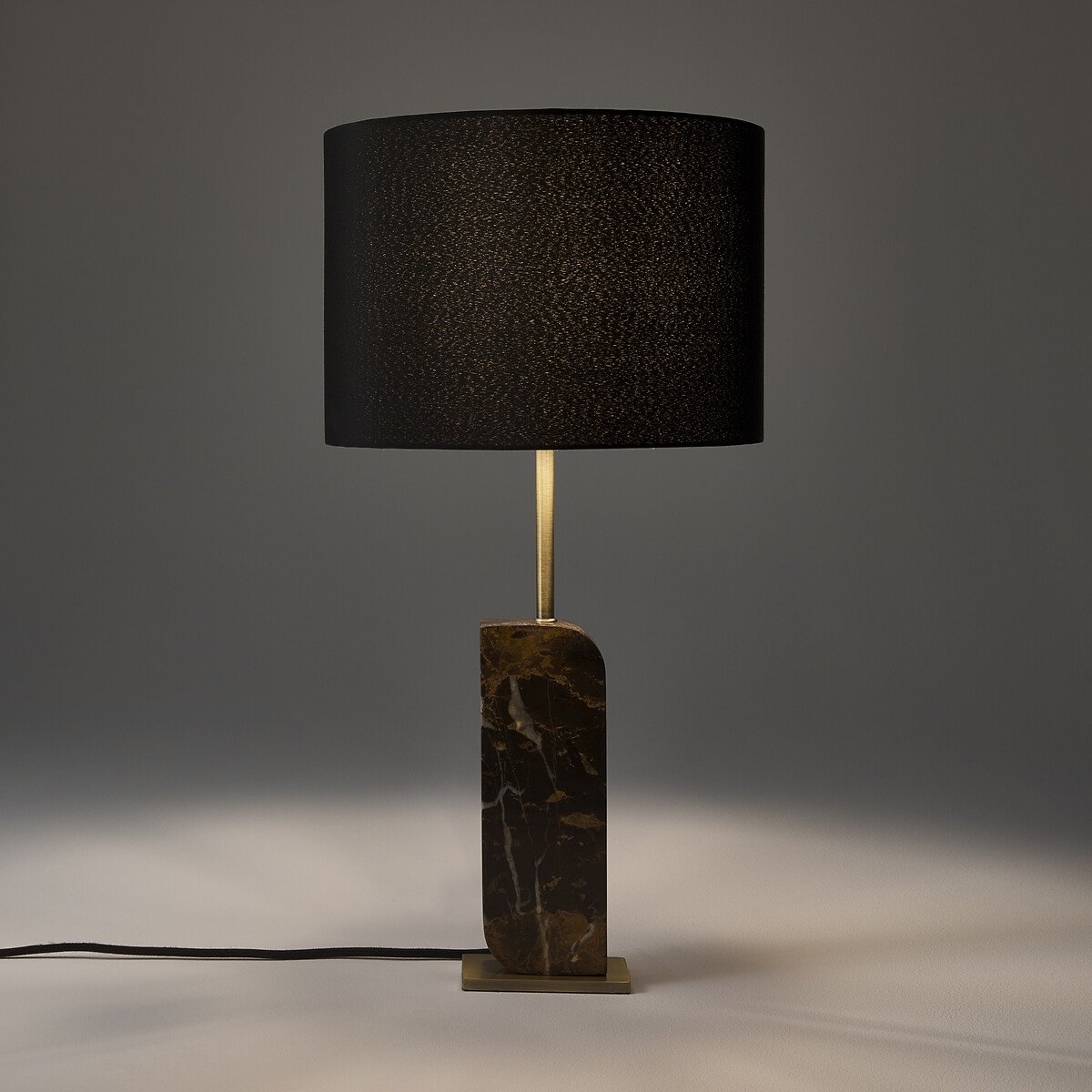 Мраморная пластина-подставка, цоколь из латуни и абажур из хлопка... Светильник великолепного качества .Описание • Мраморный цоколь, железное основание с отделкой под латунь, абажур из хлопка • Патрон E27 для флюокомпактной лампочки макс. 15 Вт (не входит в комплект)Размеры • Ширина: 28 см • Высота: 55 смРазмеры и вес упаковкиДве упаковки • Д49 x В12 x Г16 см, 3,5 кг • Д32 x В23 x Г32 см, 0,8 кг