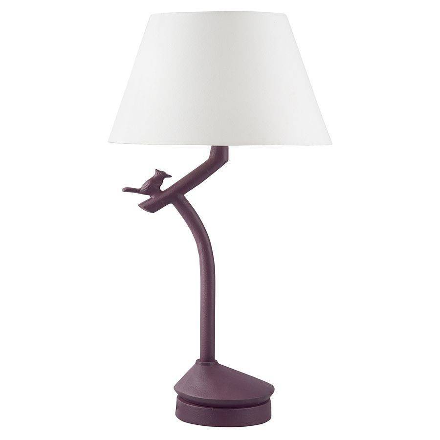 — Плафон из светлого материала красиво контрастирует с основанием стильного сливового оттенка.
