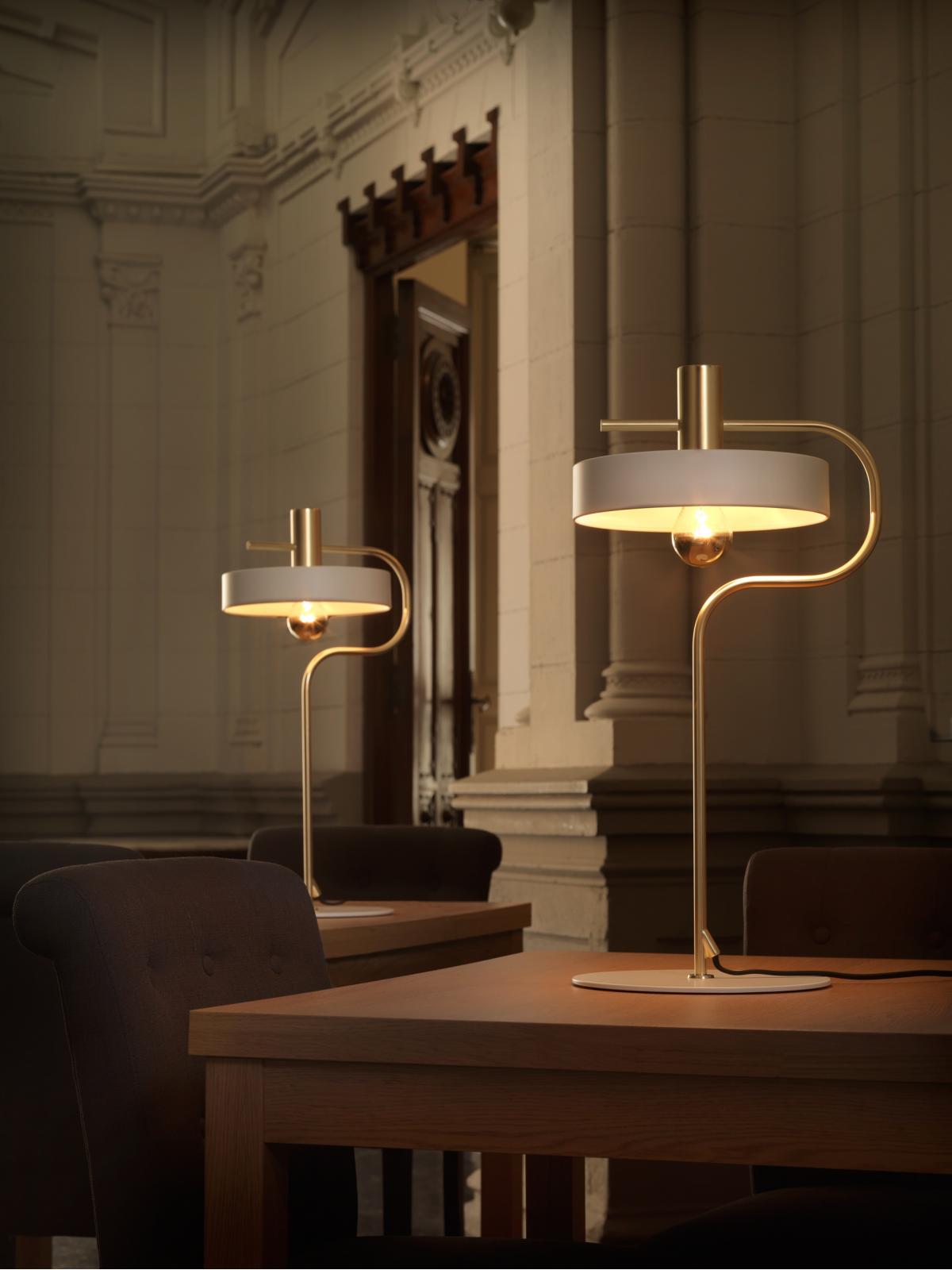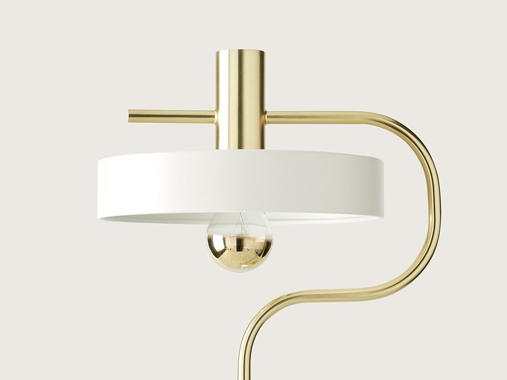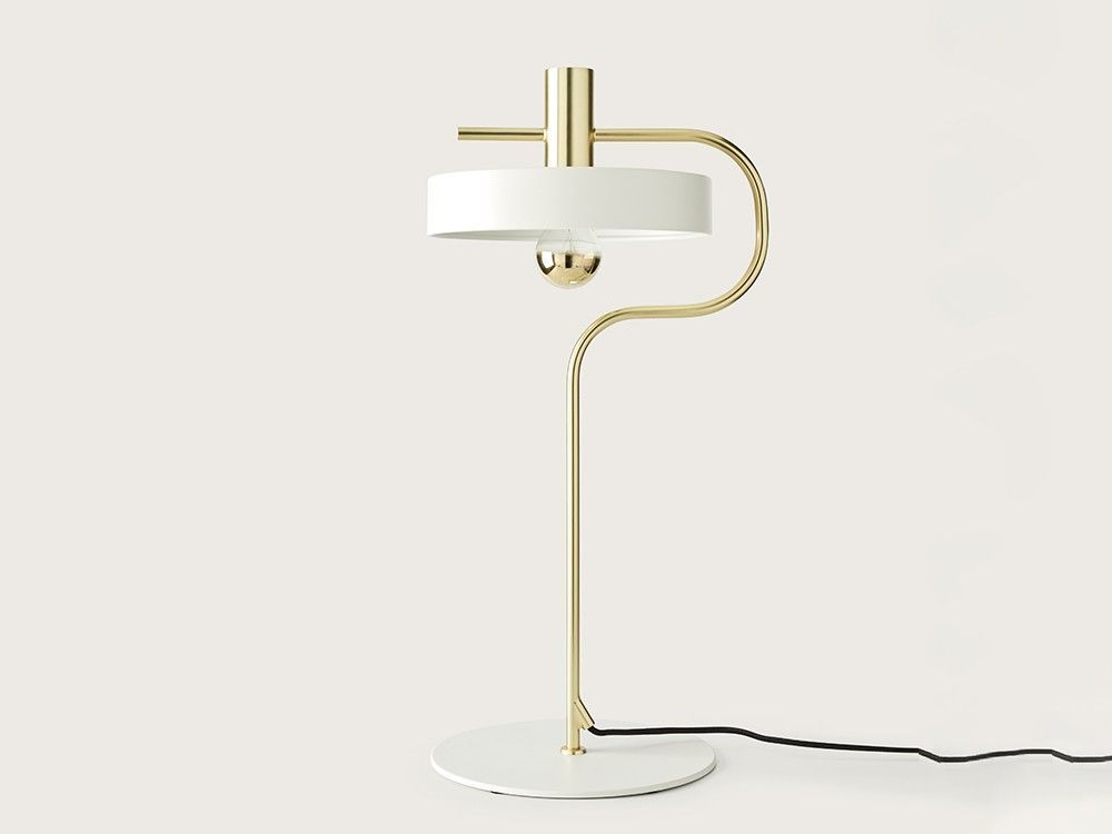 Дизайнерская настольная лампа из латунной и белой стали. Легендарный дизайн с особой индивидуальностью в элегантном сочетании.