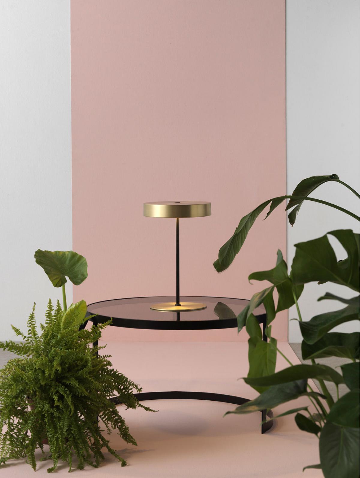 Ambor, разработанный Пепе Форнасом для Aromas del Campo, - это настольная лампа с рассеивателем и основанием из акрилового стекла, доступная в двух цветах (матовая латунь или матовый черный), и структура из черной стали.