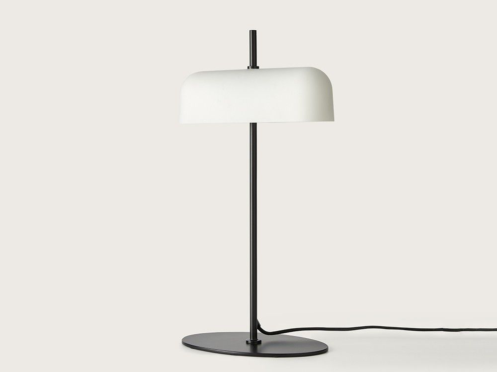 Настольная лампа для гостиной и спальни Atil. Элегантный дизайн со стальным основанием в латунном или черном исполнении и абажуром из опалового стекла, отделка, обеспечивающая равномерное распределение света по абажуру.