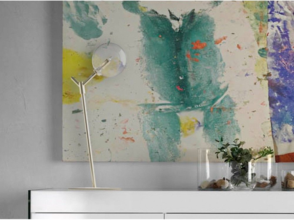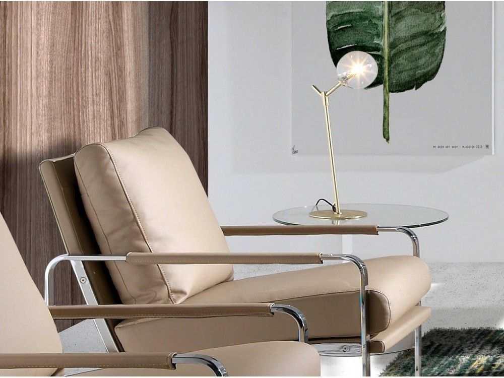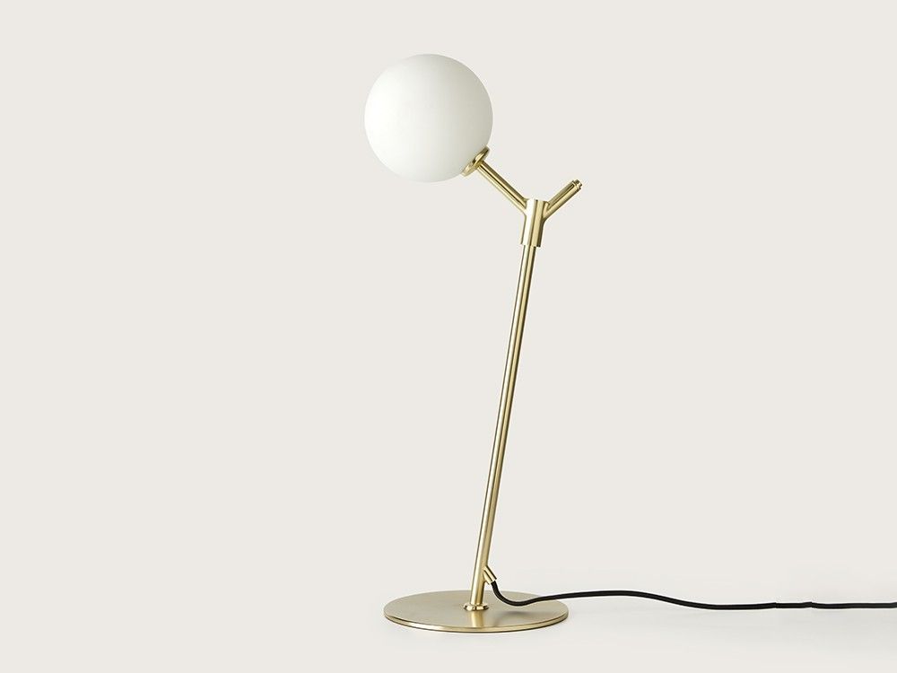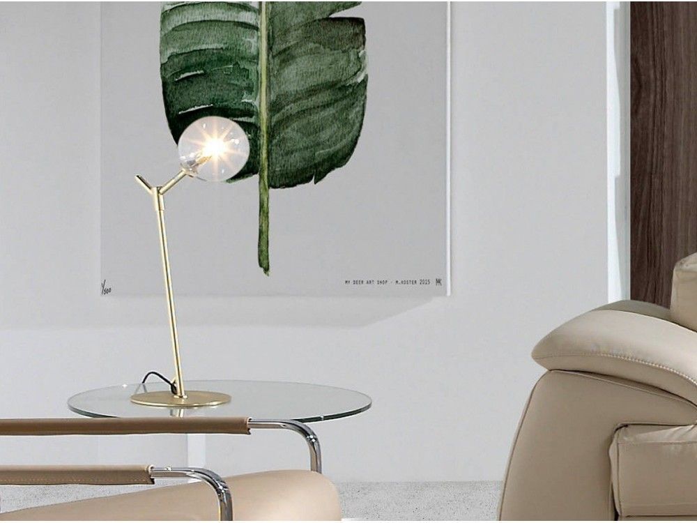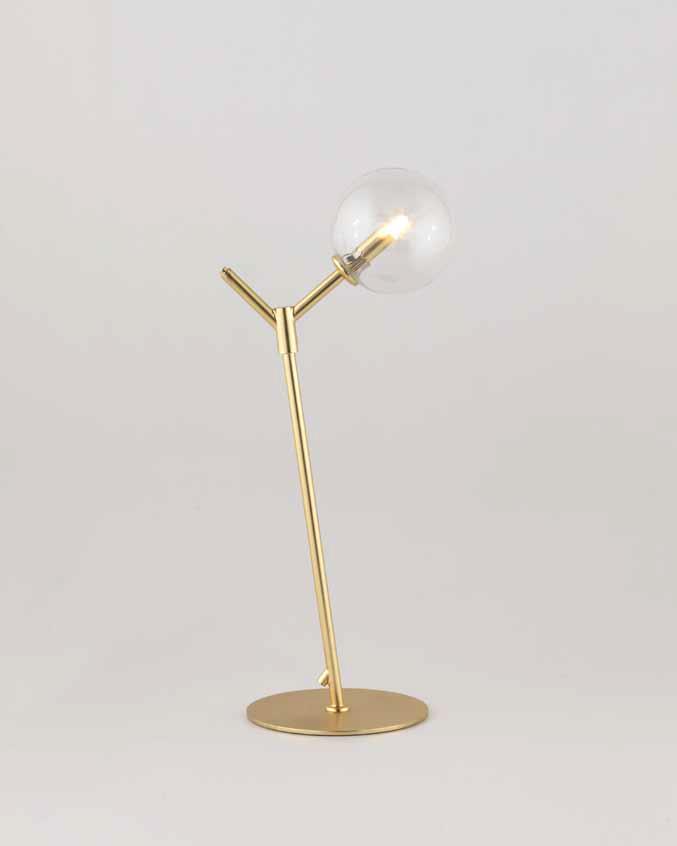 Настольная лампа с цоколем и ножкой из стали с отделкой под латунь или матовый черный цвет, а абажур - из опалового или прозрачного стекла. В комплект входит лампа G9 LED 5W 2700k .