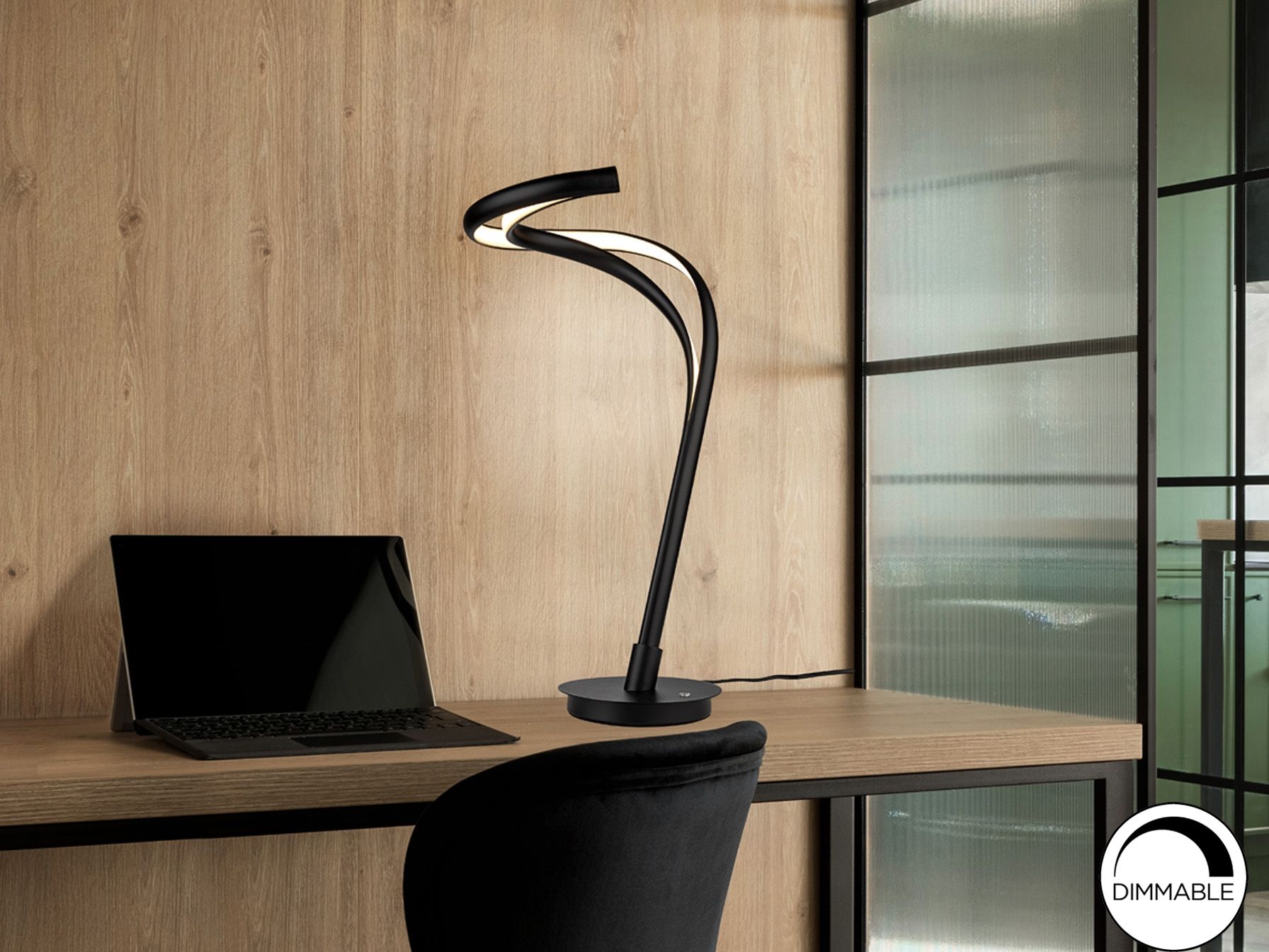 Настольная лампа из металла и алюминия с матово-черной пескоструйной обработкой. Рассеиватель из опалового силикона. Светодиод 21 Вт. 780 лм. 3000 К. РЕГУЛИРУЕМАЯ ЯРКОСТЬ