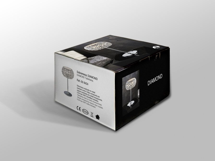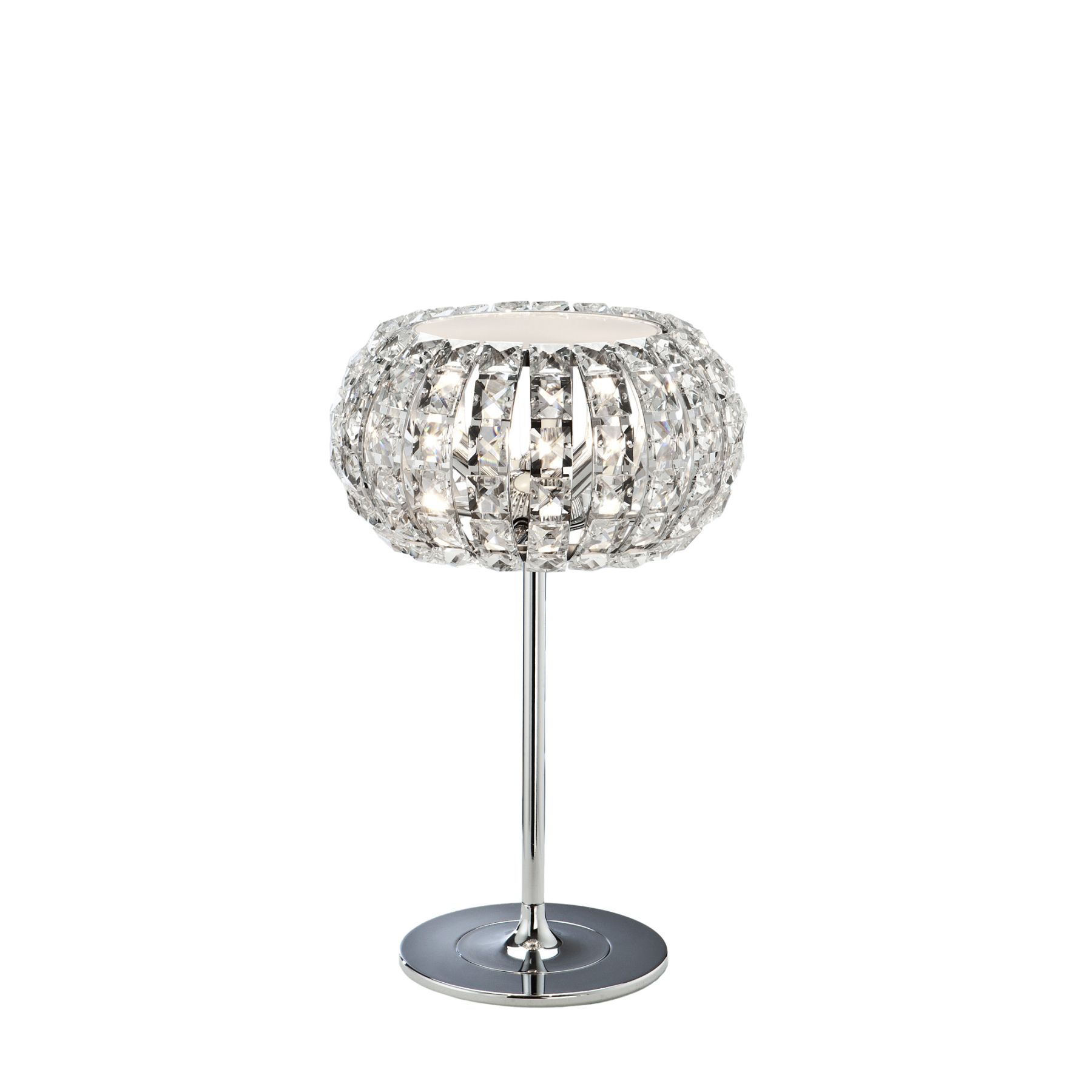 Настольная лампа из металла с 4 лампами, покрытие "хром", плафон из квадратных кристаллов из прозрачного стекла.
