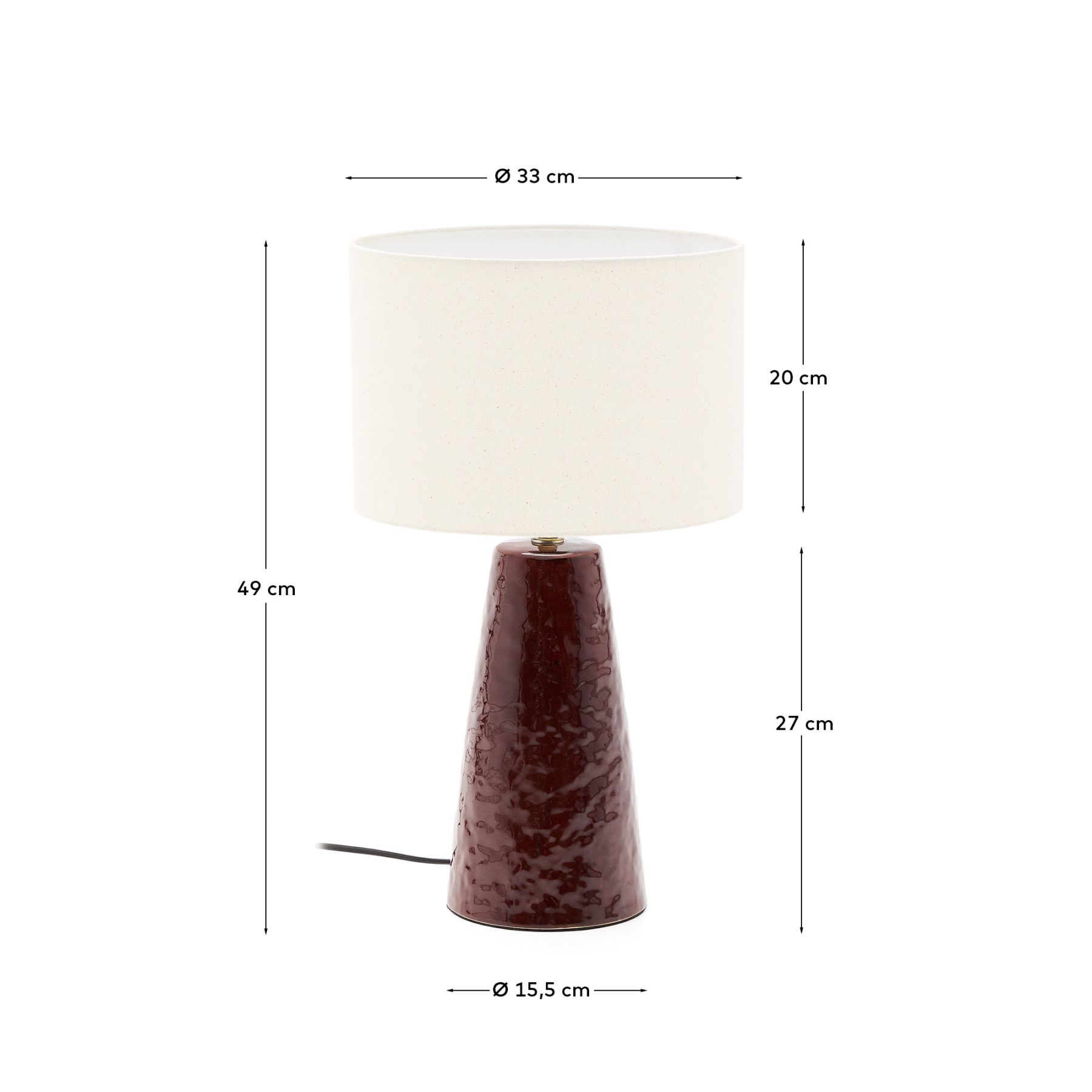 Настольная лампа Drava выделяется своим глазурованным керамическим основанием с фактурным эффектом. Цилиндрический хлопковый абажур мягко рассеивает свет, создавая уютную и сбалансированную атмосферу. Совместима с лампами E27 мощностью до 40 Вт. Универсальный предмет, который добавит изысканности и функциональности как гостиным, так и спальням.