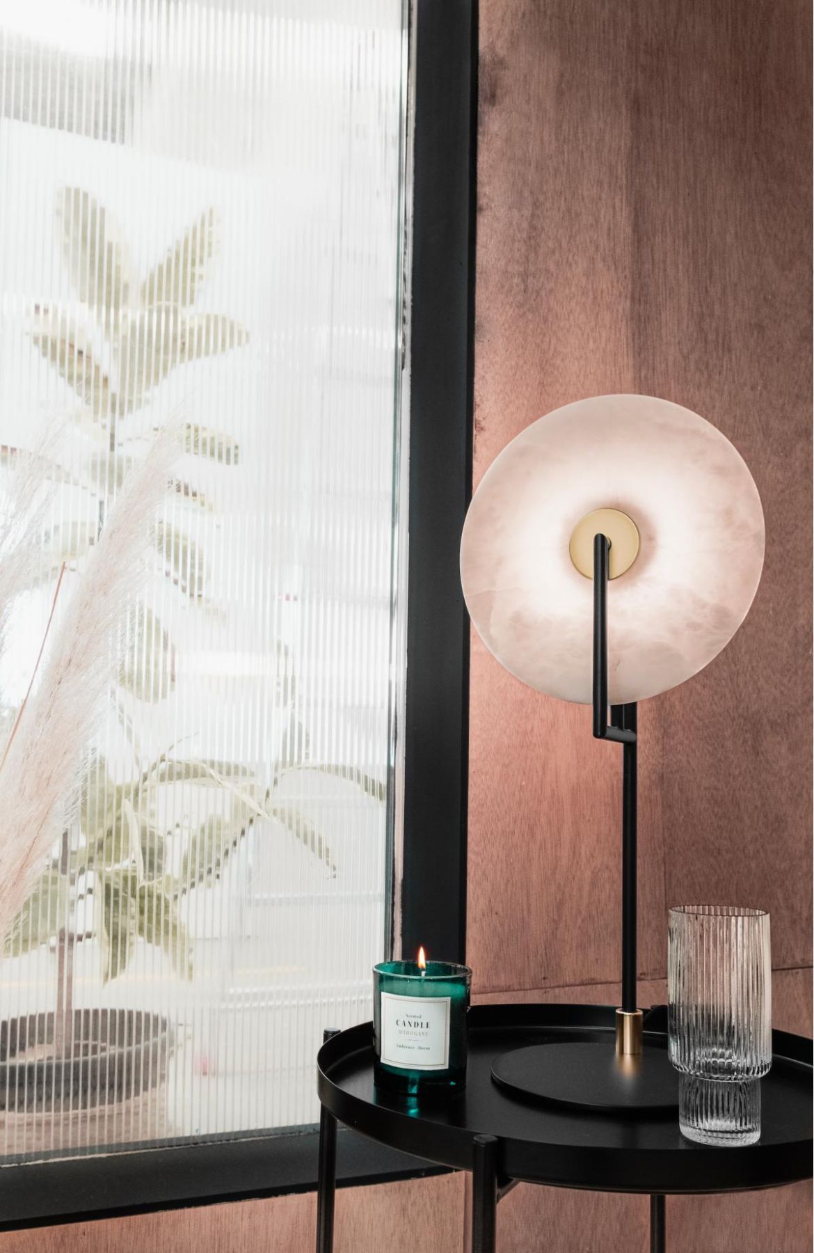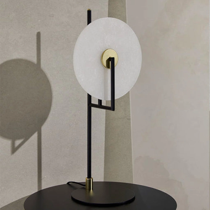 Настольный светильник с матовым черным основанием и латунными деталями. Декоративный элемент из керамики, алебастра, золотого или черного металла, полосатого металла или стекла различных цветов - не включен в комплект.
